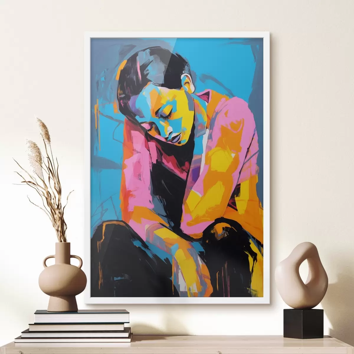 Plakatas Abstraktus susimąsčiusio žmogaus portretas ryškiomis spalvomis f42936