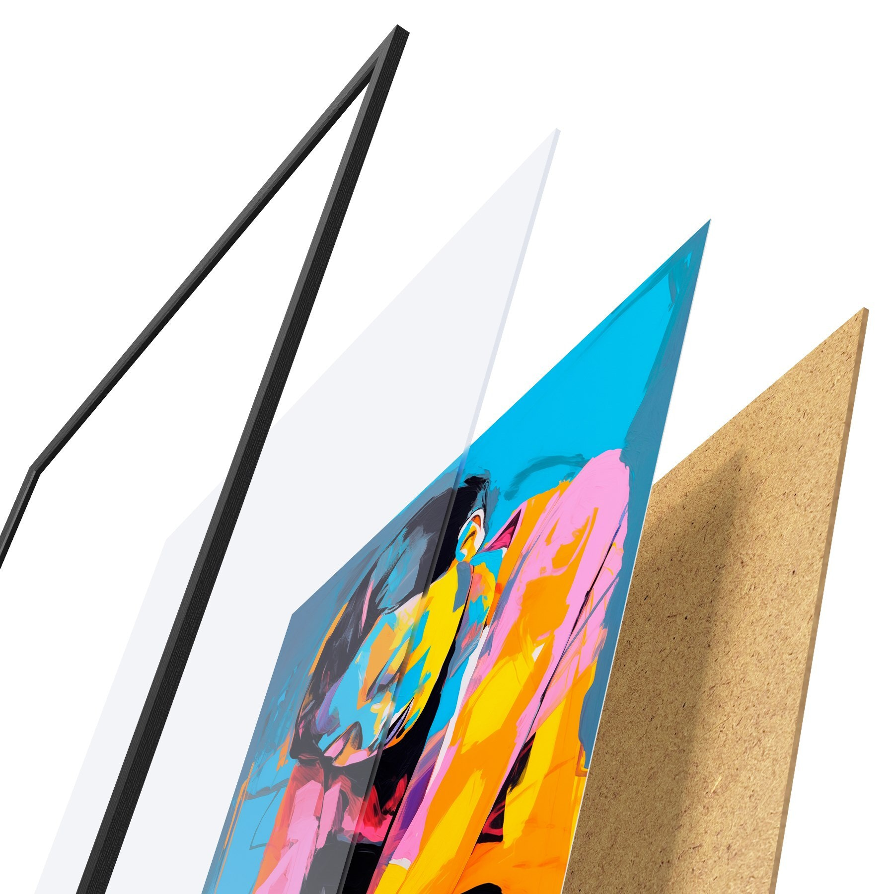 Plakatą sudaro rėmas, pleksiklas, atspausdintas vaizdas ir medžio drožlių plokštės pagrindas. Plakatą galima iš karto pakabinti ant sienos dėl kitoje pusėje esančių laikiklių.