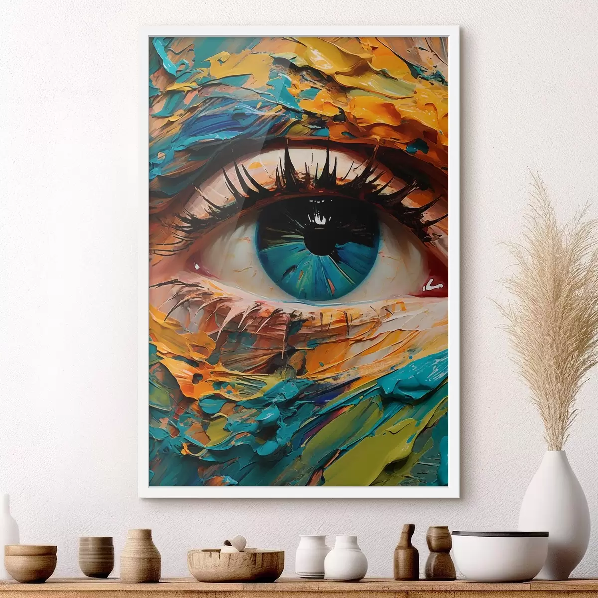 Plakatas Abstraktus akies portretas ryškiomis spalvomis, su tekstūrinės tapybos efektu f42938