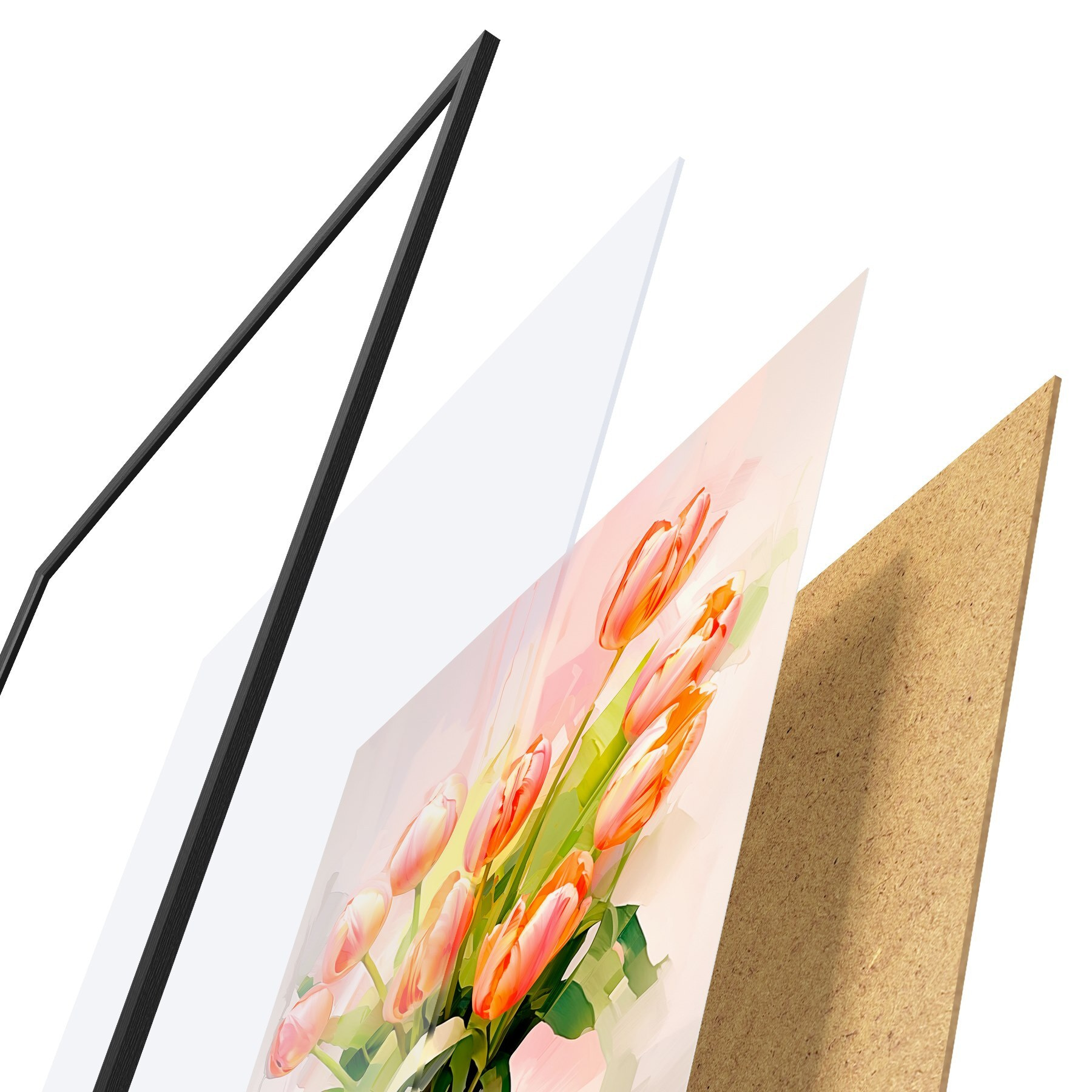 Plakatą sudaro rėmas, pleksiklas, atspausdintas vaizdas ir medžio drožlių plokštės pagrindas. Plakatą galima iš karto pakabinti ant sienos dėl kitoje pusėje esančių laikiklių.