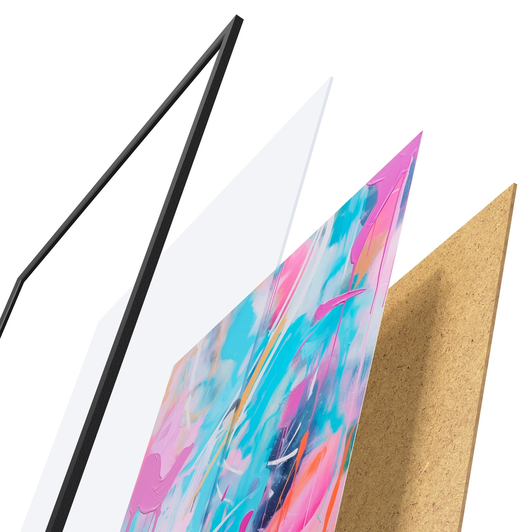 Plakatą sudaro rėmas, pleksiklas, atspausdintas vaizdas ir medžio drožlių plokštės pagrindas. Plakatą galima iš karto pakabinti ant sienos dėl kitoje pusėje esančių laikiklių.