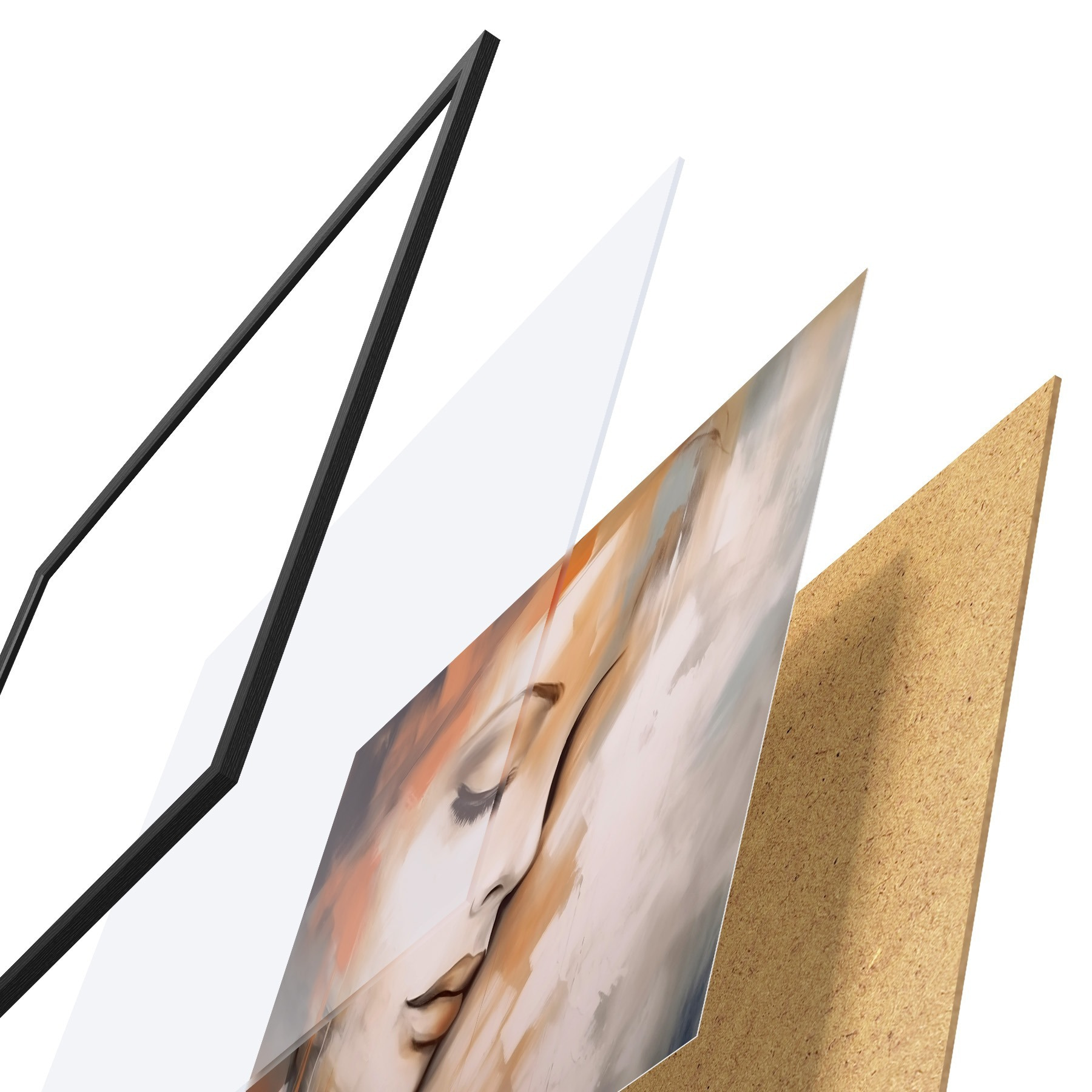 Plakatą sudaro rėmas, pleksiklas, atspausdintas vaizdas ir medžio drožlių plokštės pagrindas. Plakatą galima iš karto pakabinti ant sienos dėl kitoje pusėje esančių laikiklių.