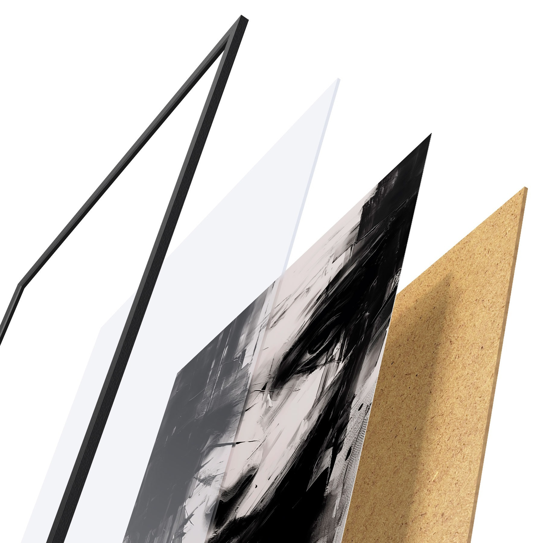 Plakatą sudaro rėmas, pleksiklas, atspausdintas vaizdas ir medžio drožlių plokštės pagrindas. Plakatą galima iš karto pakabinti ant sienos dėl kitoje pusėje esančių laikiklių.