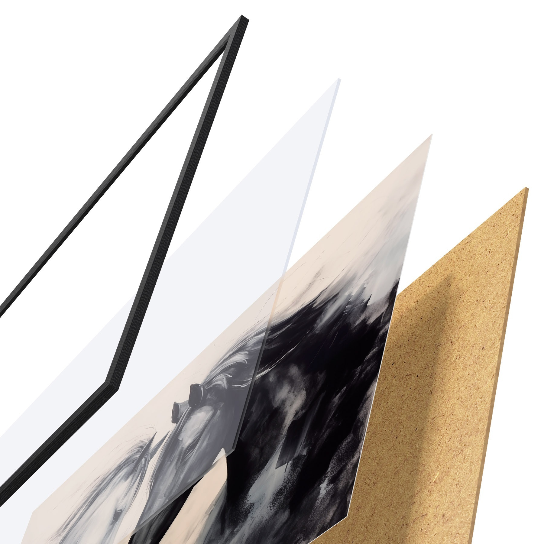 Plakatą sudaro rėmas, pleksiklas, atspausdintas vaizdas ir medžio drožlių plokštės pagrindas. Plakatą galima iš karto pakabinti ant sienos dėl kitoje pusėje esančių laikiklių.