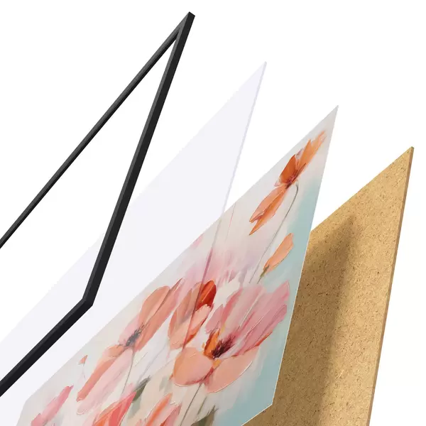 Plakatą sudaro rėmas, pleksiklas, atspausdintas vaizdas ir medžio drožlių plokštės pagrindas. Plakatą galima iš karto pakabinti ant sienos dėl kitoje pusėje esančių laikiklių.