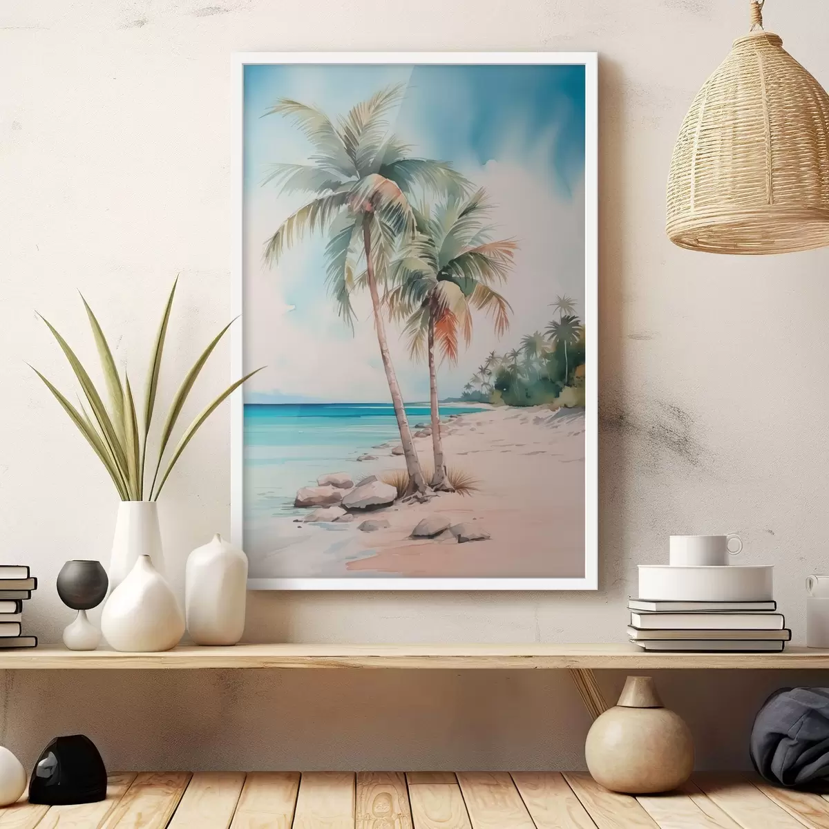 Plakatas Palmės prie jūros akvarelės imitacija f42958