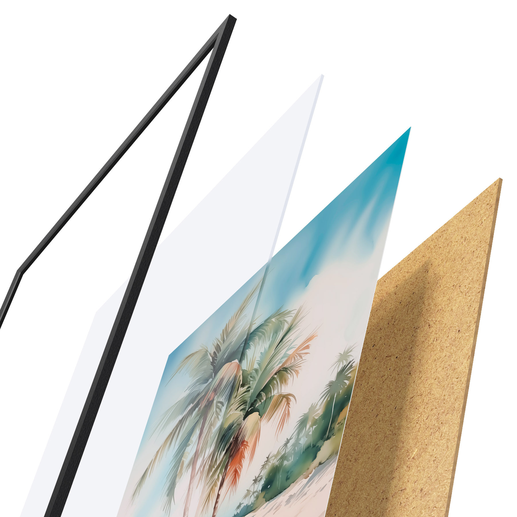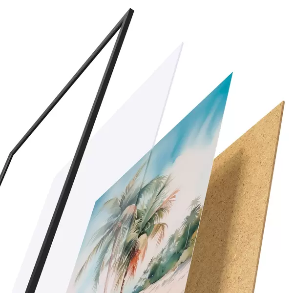 Plakatą sudaro rėmas, pleksiklas, atspausdintas vaizdas ir medžio drožlių plokštės pagrindas. Plakatą galima iš karto pakabinti ant sienos dėl kitoje pusėje esančių laikiklių.