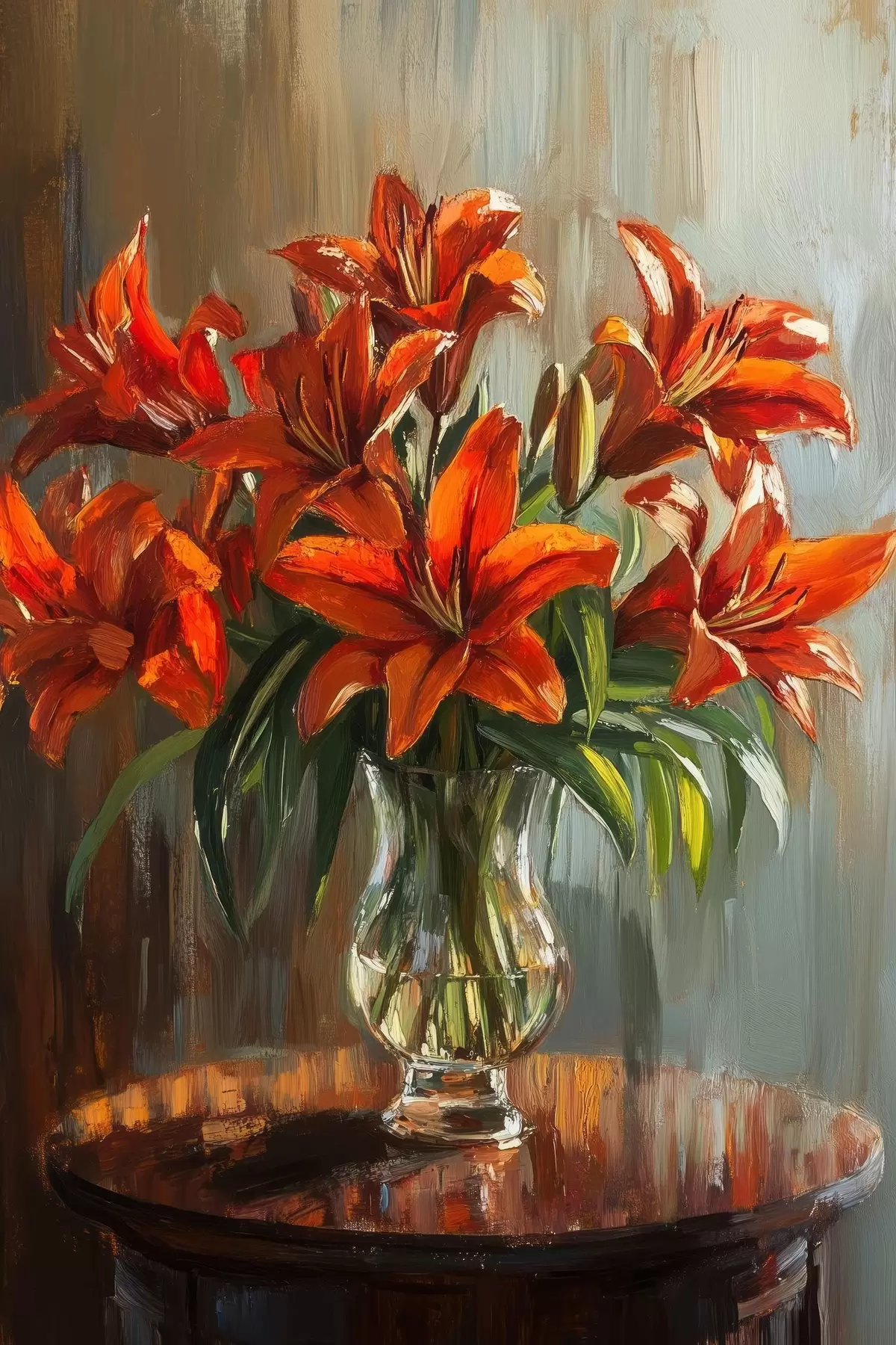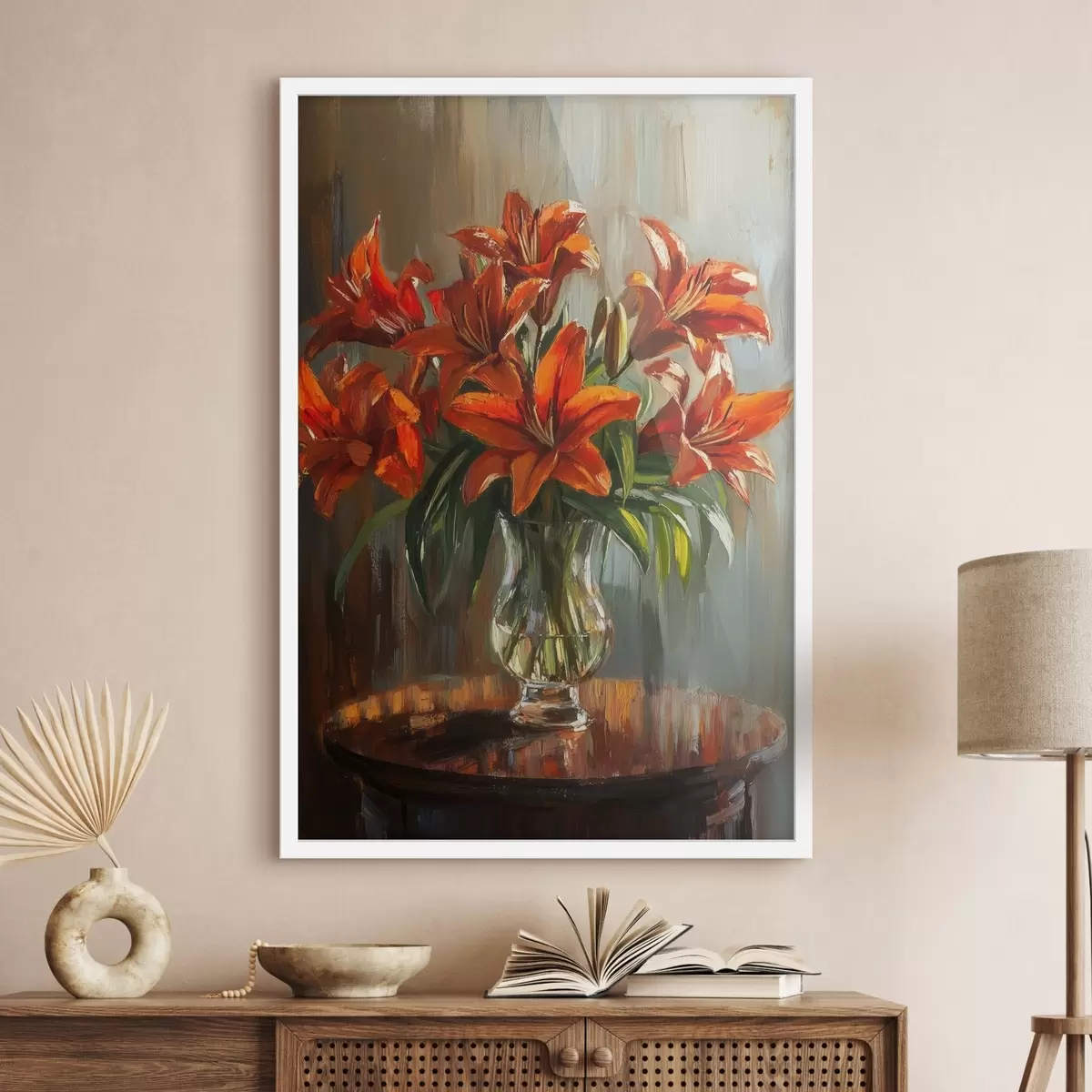 Plakatas Raudonos lelijos aliejinių dažų stiliumi f42977