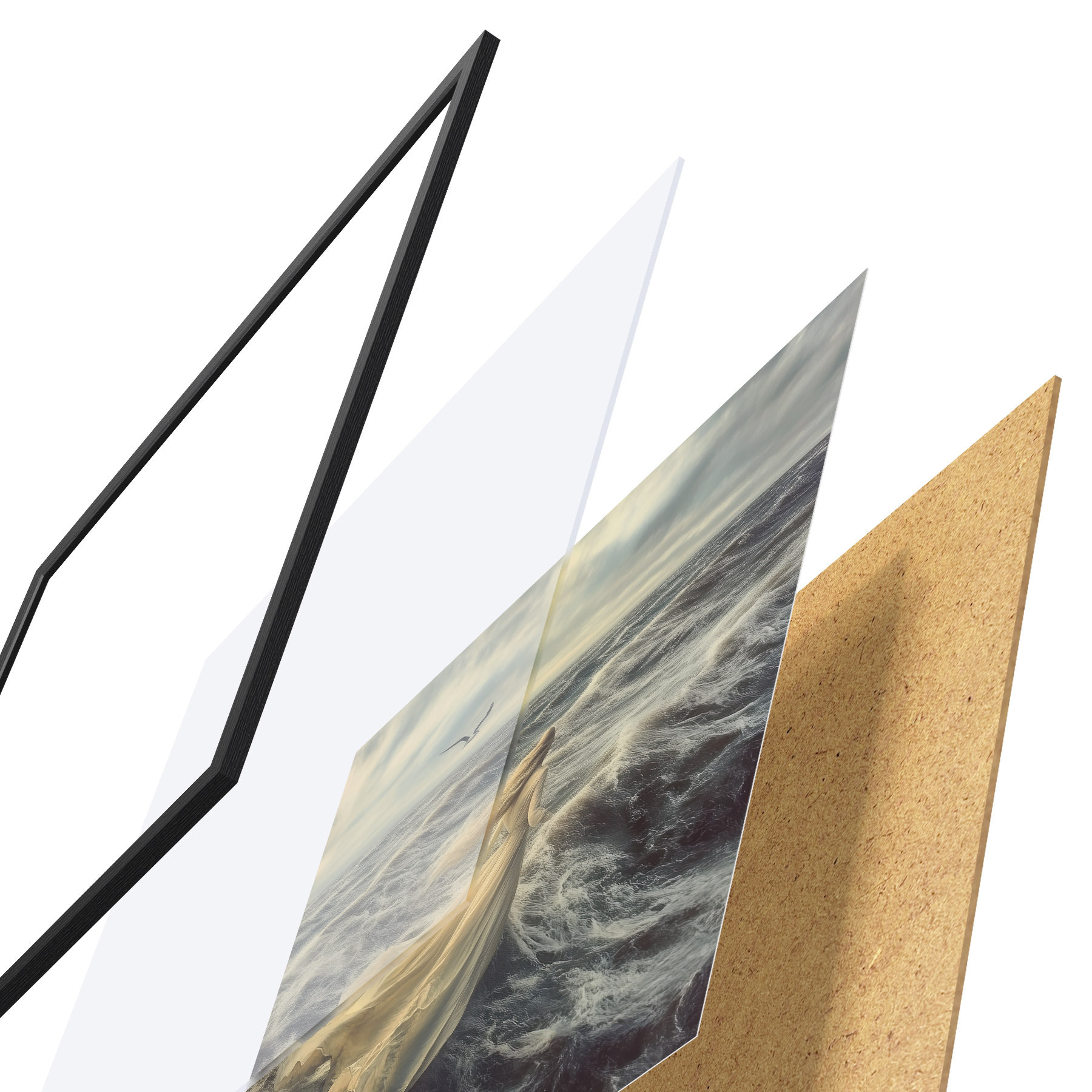 Plakatą sudaro rėmas, pleksiklas, atspausdintas vaizdas ir medžio drožlių plokštės pagrindas. Plakatą galima iš karto pakabinti ant sienos dėl kitoje pusėje esančių laikiklių.
