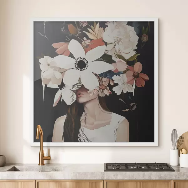 Plakatas Mergaitė su gėlėmis ant veido Ne f42989