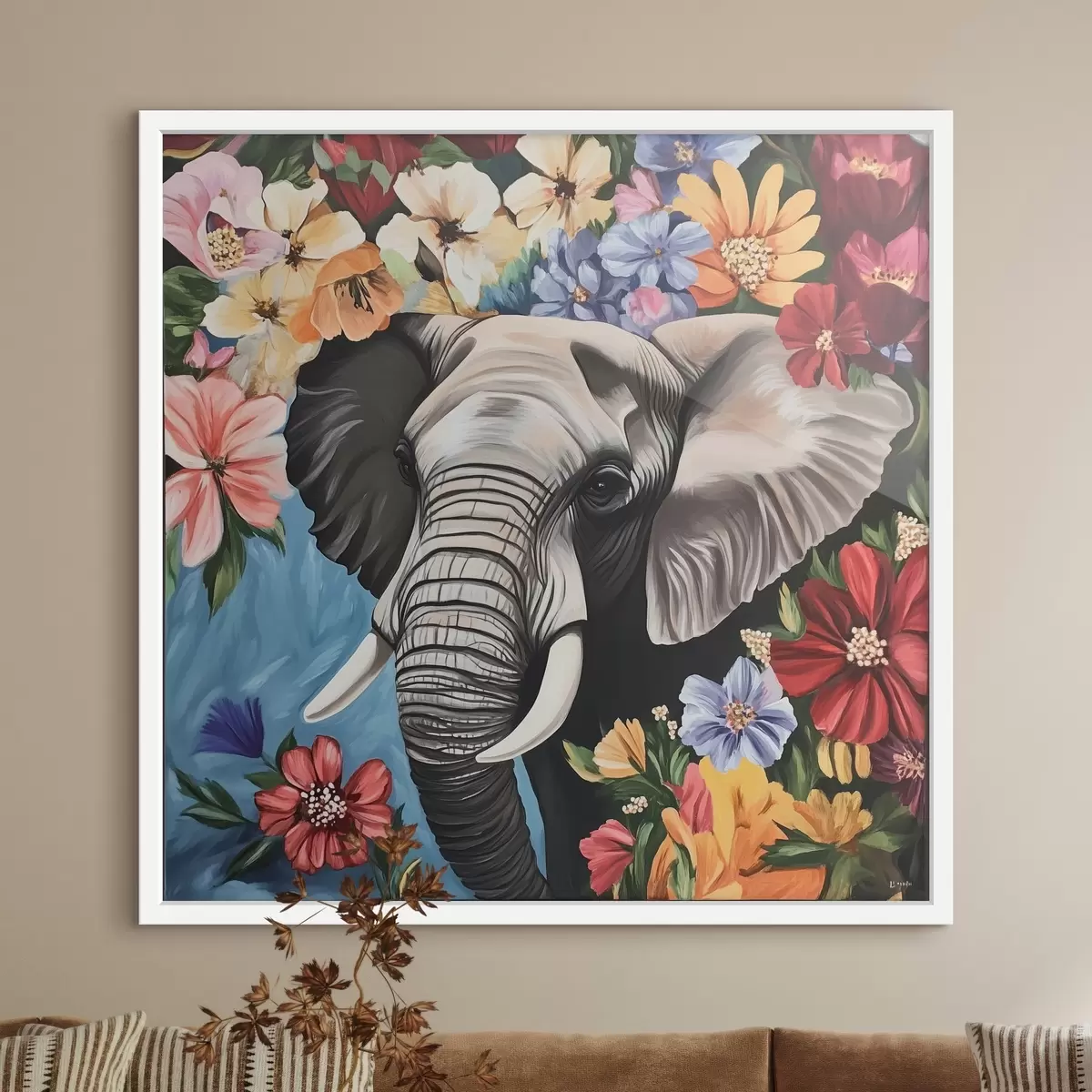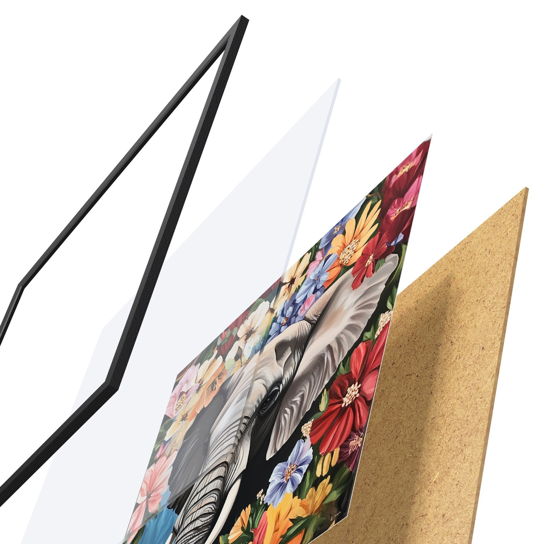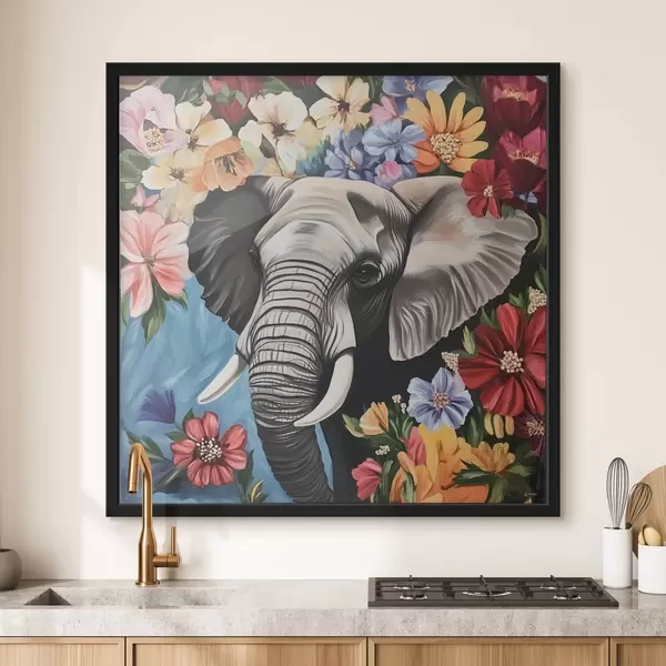 Plakatas Dramblys ryškiomis gėlėmis f42990