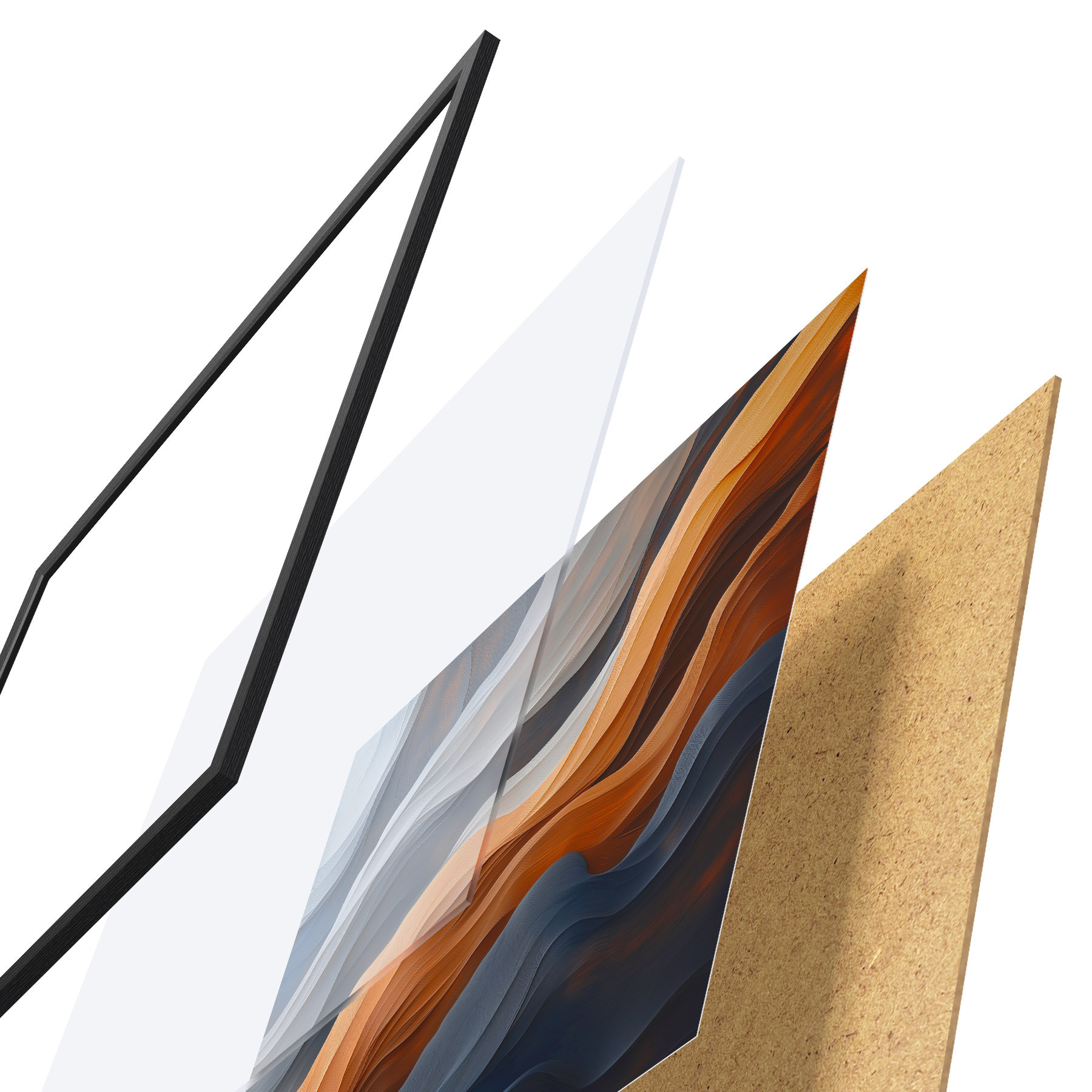 Plakatą sudaro rėmas, pleksiklas, atspausdintas vaizdas ir medžio drožlių plokštės pagrindas. Plakatą galima iš karto pakabinti ant sienos dėl kitoje pusėje esančių laikiklių.