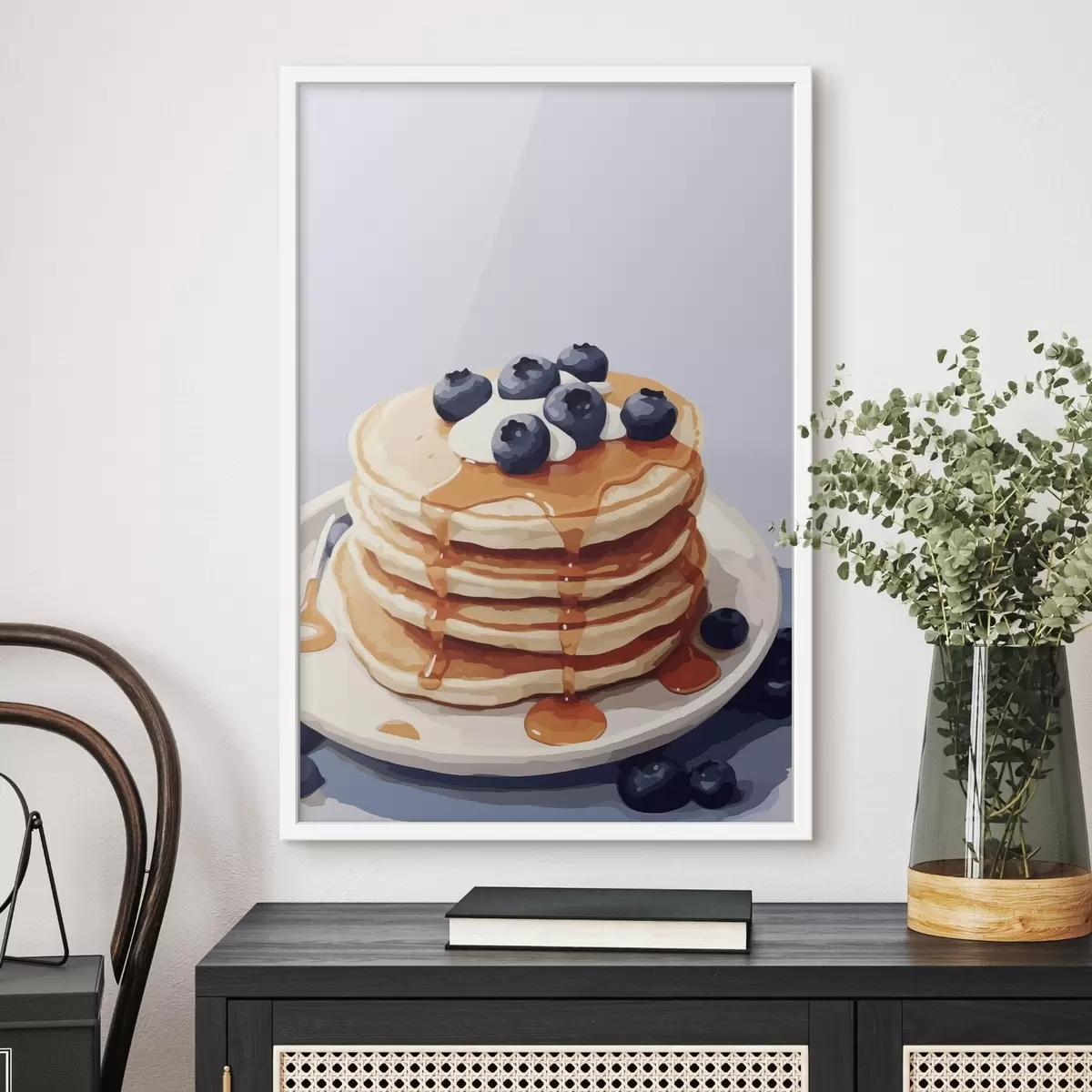 Plakatas Blyneliai su sirupu ir mėlynėmis lėkštėje Ne f43009