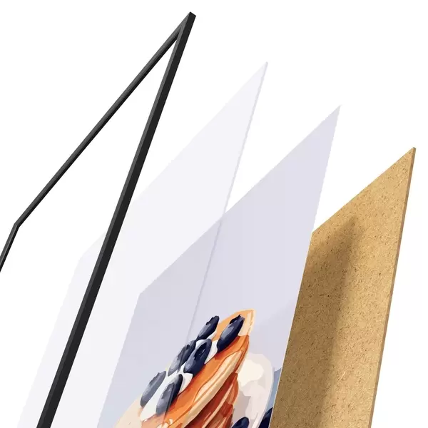 Plakatą sudaro rėmas, pleksiklas, atspausdintas vaizdas ir medžio drožlių plokštės pagrindas. Plakatą galima iš karto pakabinti ant sienos dėl kitoje pusėje esančių laikiklių.