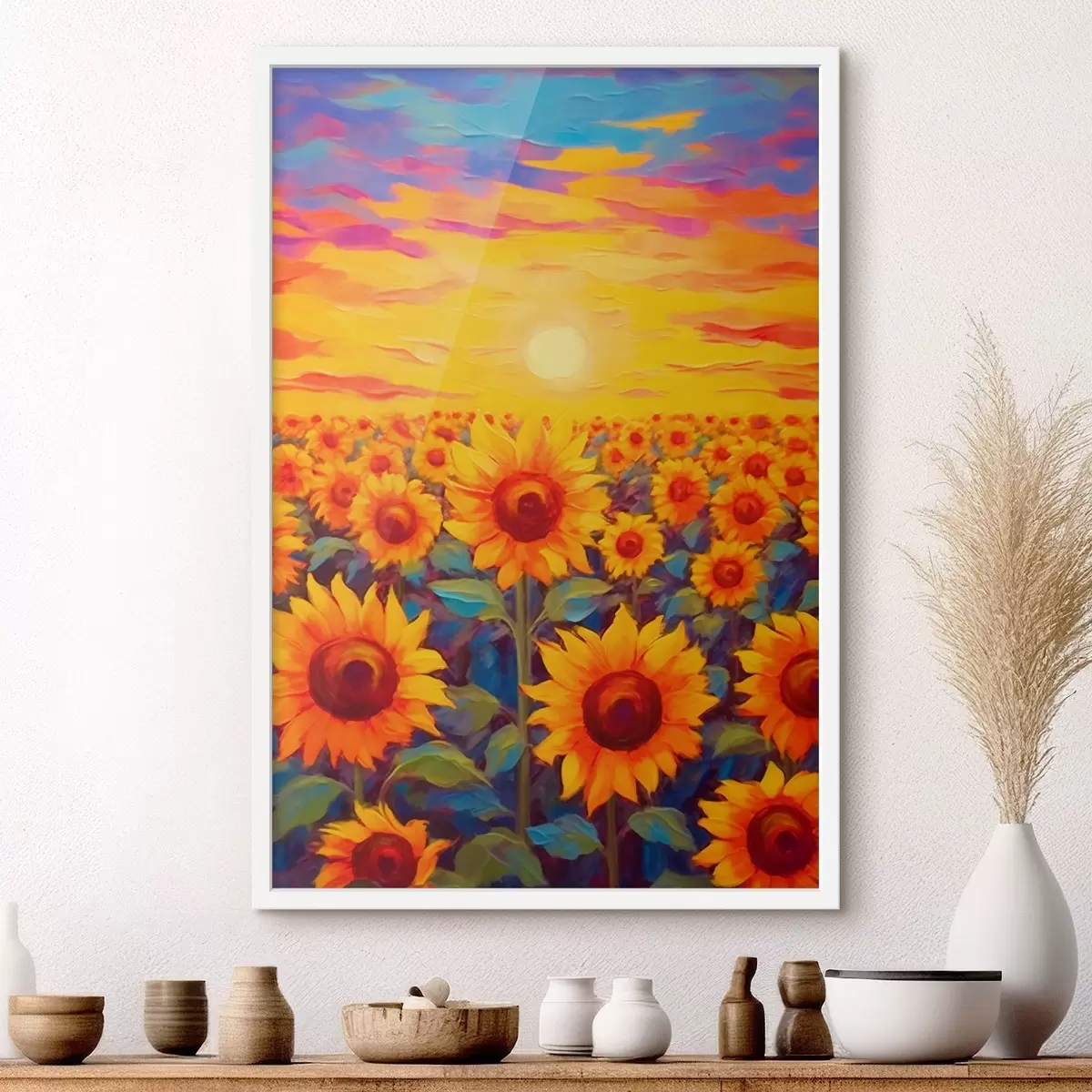 Plakatas Saulėgrąžų laukas saulėlydžio metu f43010