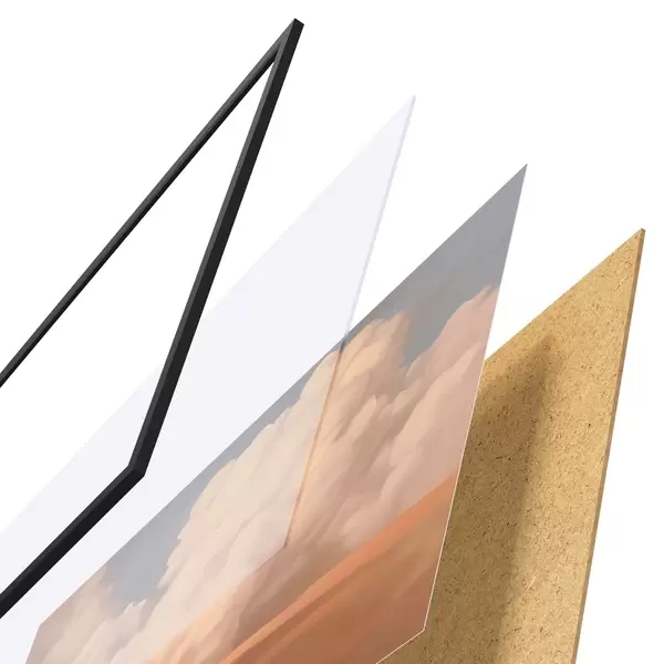 Plakatą sudaro rėmas, pleksiklas, atspausdintas vaizdas ir medžio drožlių plokštės pagrindas. Plakatą galima iš karto pakabinti ant sienos dėl kitoje pusėje esančių laikiklių.