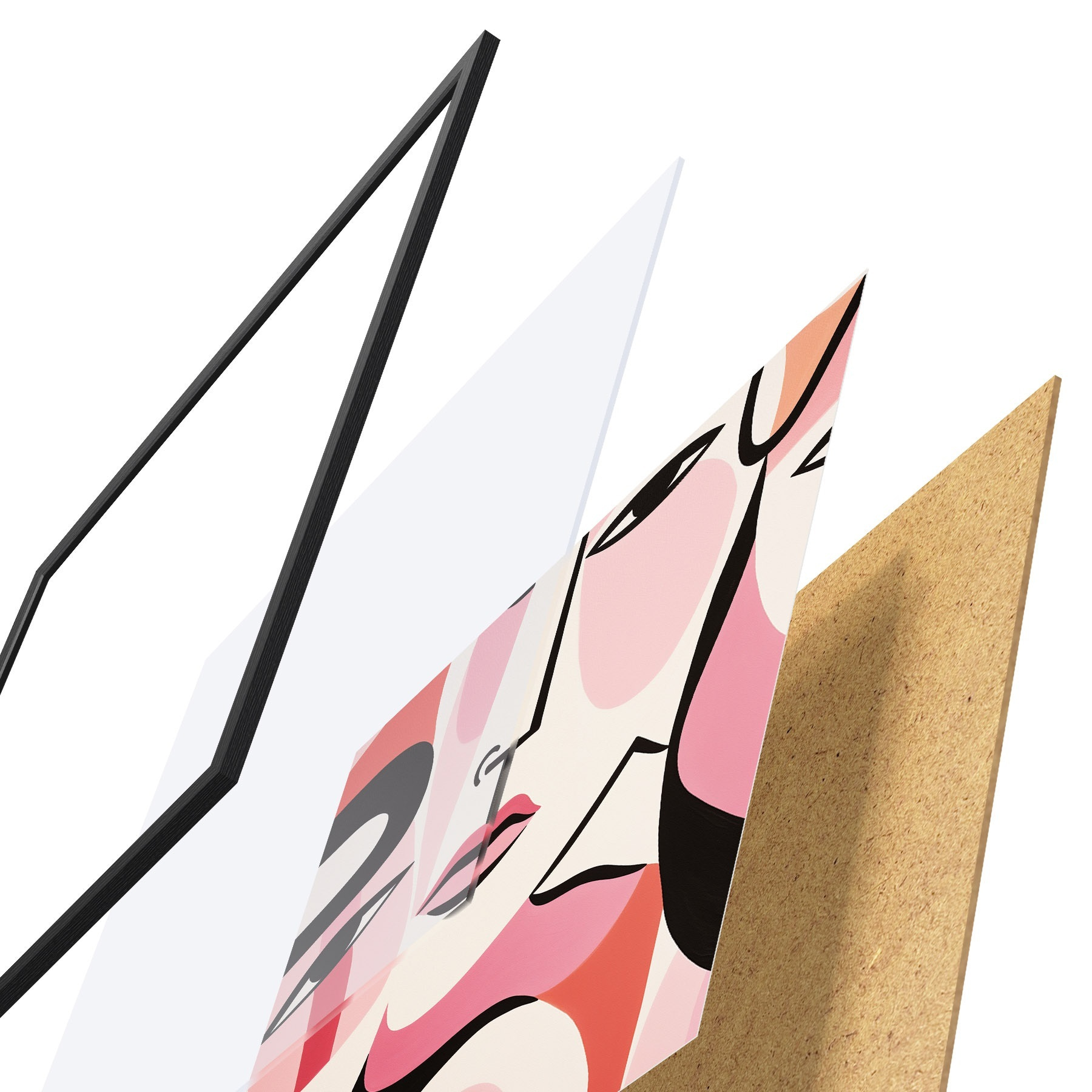 Plakatą sudaro rėmas, pleksiklas, atspausdintas vaizdas ir medžio drožlių plokštės pagrindas. Plakatą galima iš karto pakabinti ant sienos dėl kitoje pusėje esančių laikiklių.