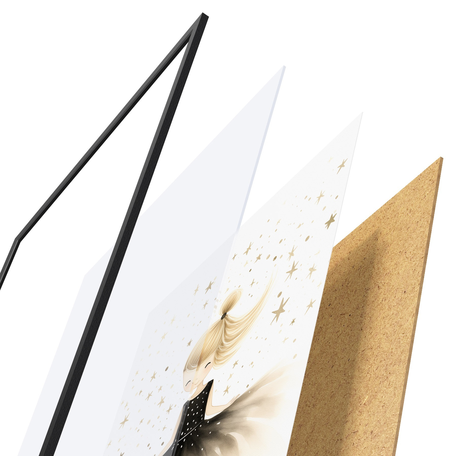 Plakatą sudaro rėmas, pleksiklas, atspausdintas vaizdas ir medžio drožlių plokštės pagrindas. Plakatą galima iš karto pakabinti ant sienos dėl kitoje pusėje esančių laikiklių.