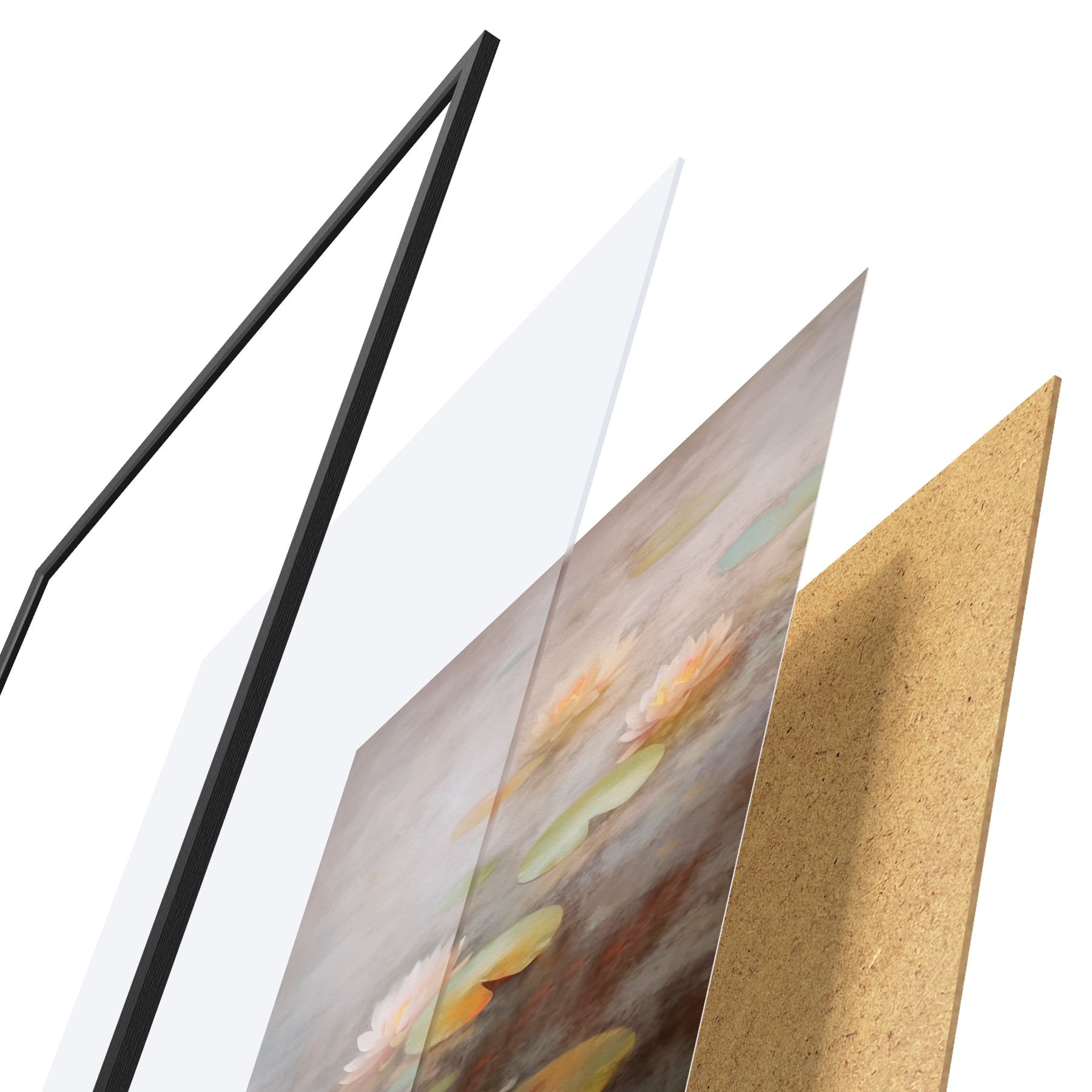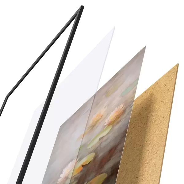 Plakatą sudaro rėmas, pleksiklas, atspausdintas vaizdas ir medžio drožlių plokštės pagrindas. Plakatą galima iš karto pakabinti ant sienos dėl kitoje pusėje esančių laikiklių.