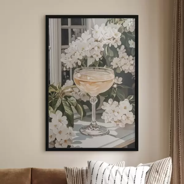 Plakatas Taurė šampano, vintažinis, akvarelės stilius, baltos gėlės Ne f43051