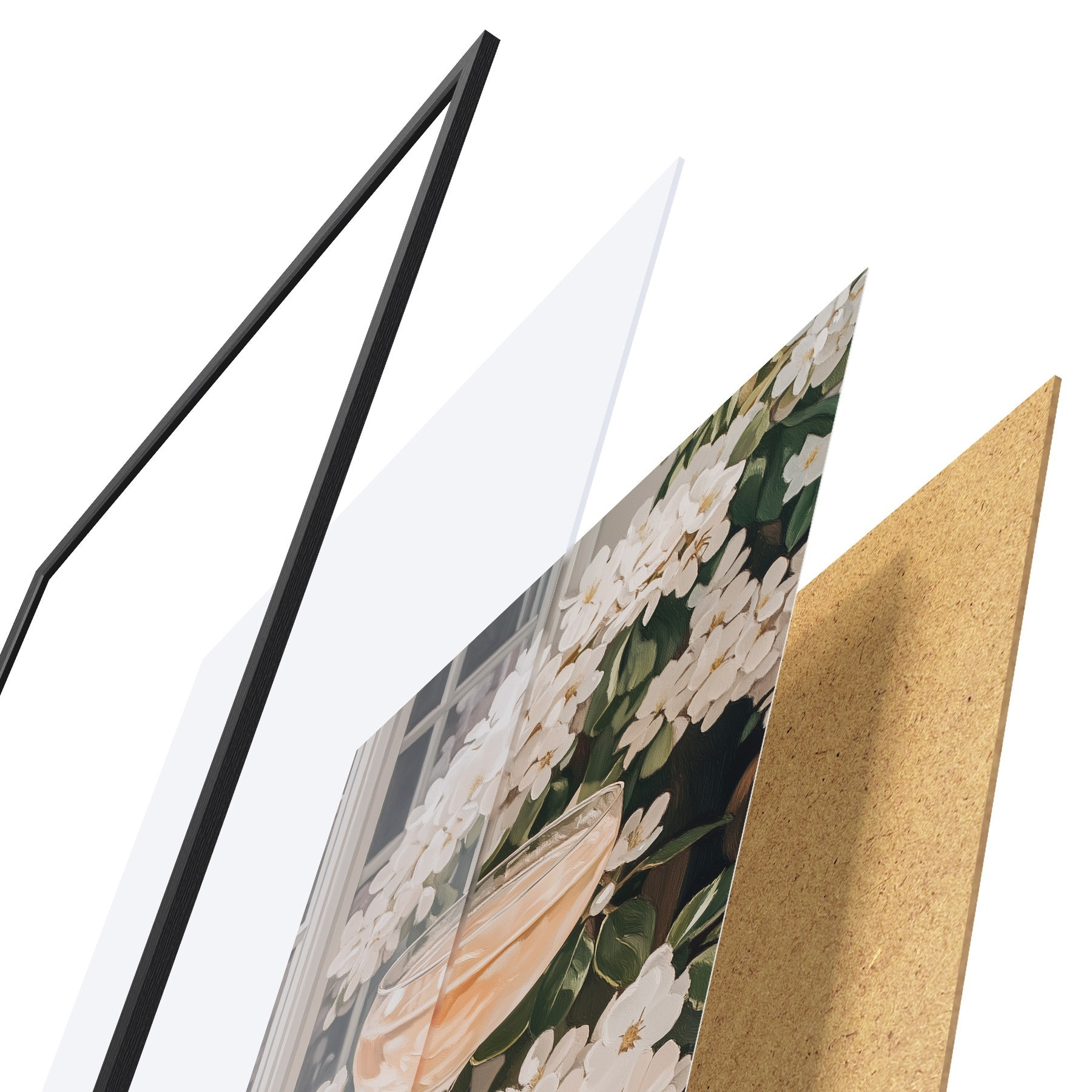 Plakatą sudaro rėmas, pleksiklas, atspausdintas vaizdas ir medžio drožlių plokštės pagrindas. Plakatą galima iš karto pakabinti ant sienos dėl kitoje pusėje esančių laikiklių.