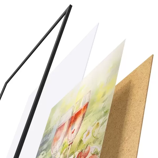 Plakatą sudaro rėmas, pleksiklas, atspausdintas vaizdas ir medžio drožlių plokštės pagrindas. Plakatą galima iš karto pakabinti ant sienos dėl kitoje pusėje esančių laikiklių.