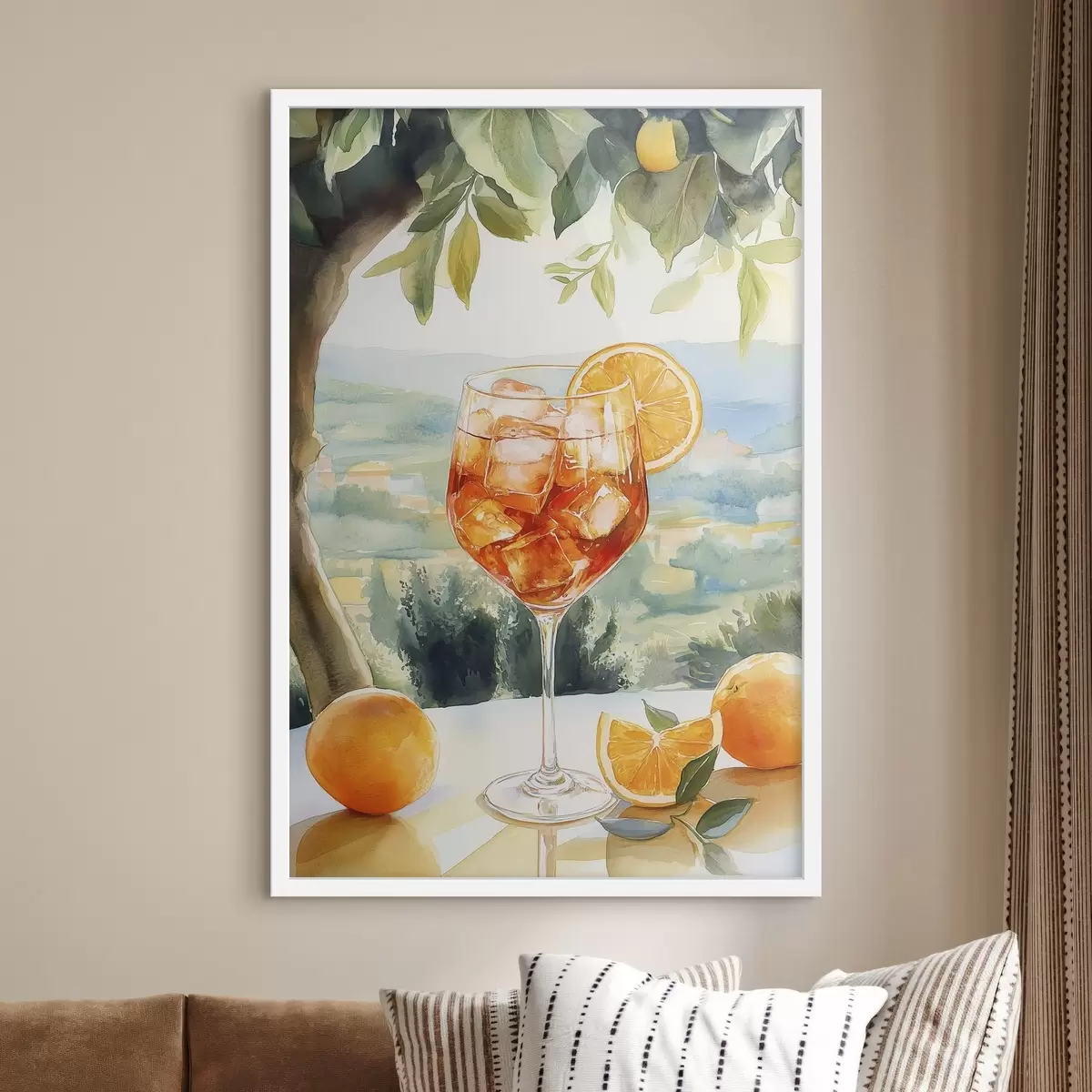 Plakatas Vasaros kokteilis, Aperol Spritz, apelsinai, akvarelės stiliaus piešinys f43058