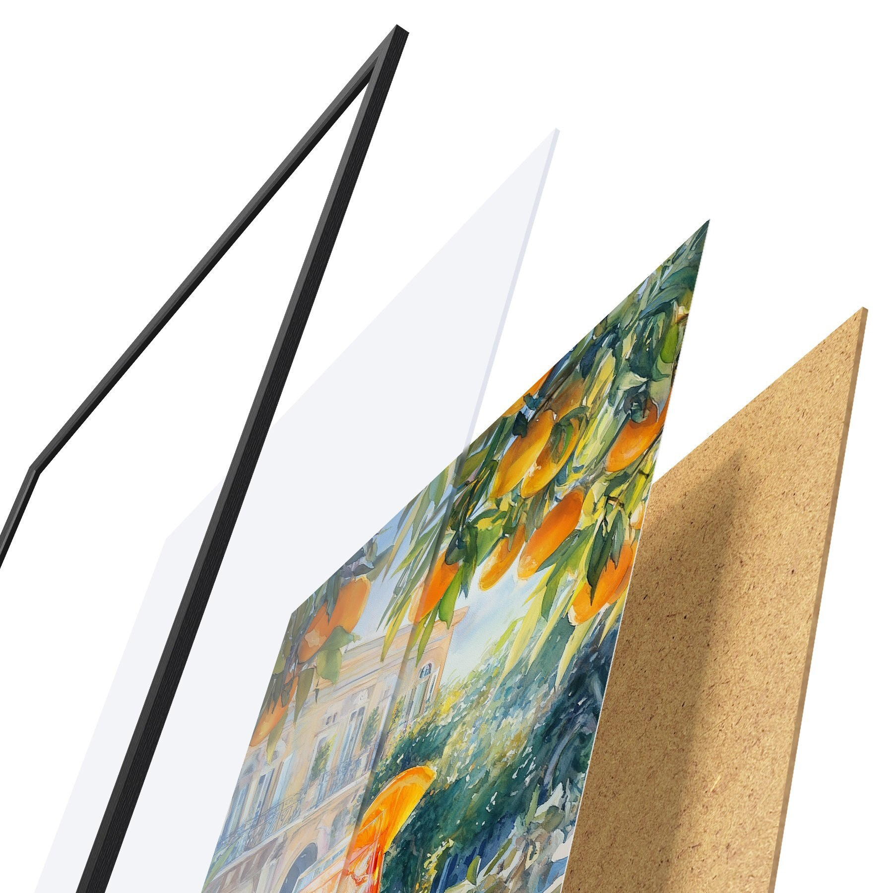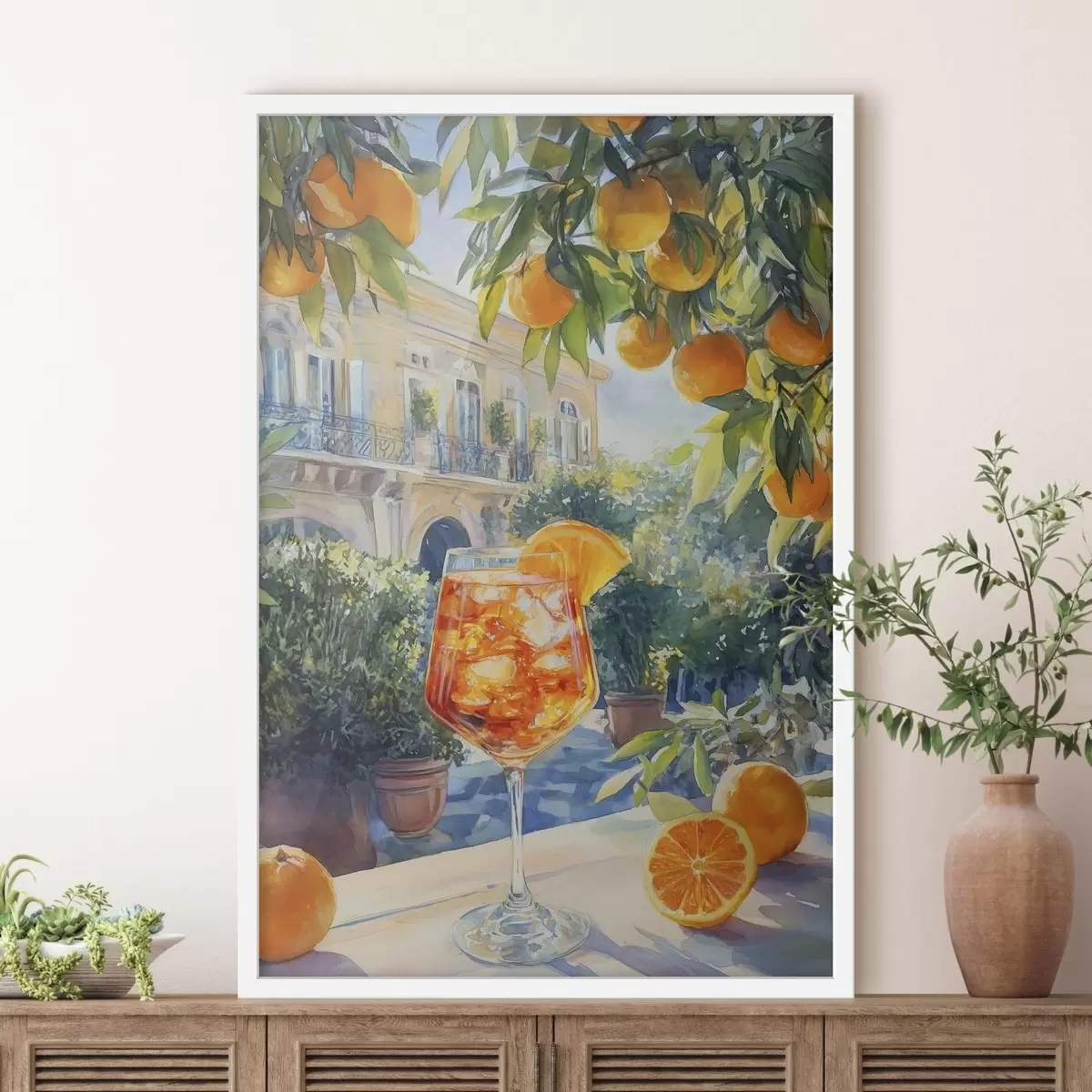 Plakatas Kokteilis su apelsinais, akvarelės stilius, Italija, Aperol Spritz, architektūra, vasaros sodas f43061