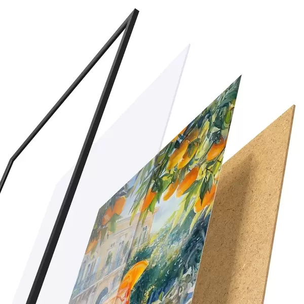 Plakatą sudaro rėmas, pleksiklas, atspausdintas vaizdas ir medžio drožlių plokštės pagrindas. Plakatą galima iš karto pakabinti ant sienos dėl kitoje pusėje esančių laikiklių.