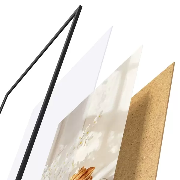 Plakatą sudaro rėmas, pleksiklas, atspausdintas vaizdas ir medžio drožlių plokštės pagrindas. Plakatą galima iš karto pakabinti ant sienos dėl kitoje pusėje esančių laikiklių.