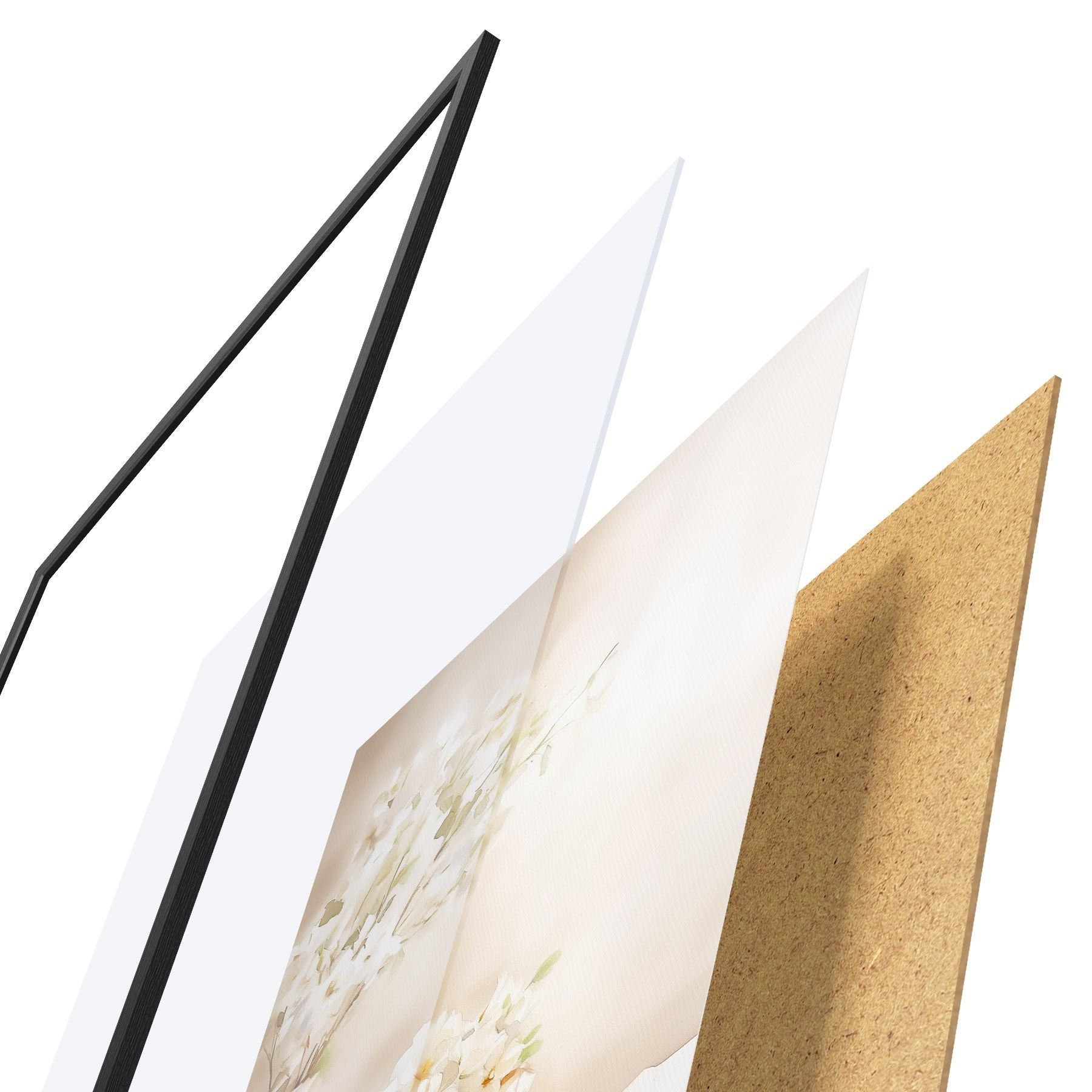 Plakatą sudaro rėmas, pleksiklas, atspausdintas vaizdas ir medžio drožlių plokštės pagrindas. Plakatą galima iš karto pakabinti ant sienos dėl kitoje pusėje esančių laikiklių.