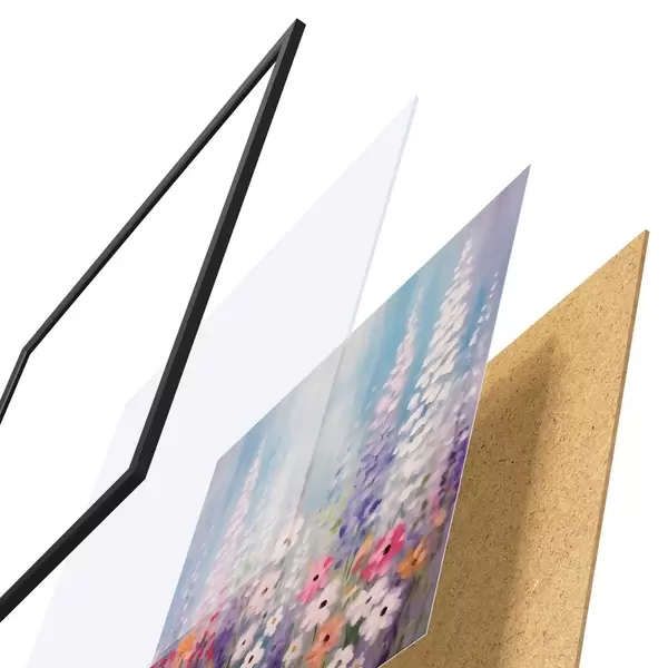 Plakatą sudaro rėmas, pleksiklas, atspausdintas vaizdas ir medžio drožlių plokštės pagrindas. Plakatą galima iš karto pakabinti ant sienos dėl kitoje pusėje esančių laikiklių.