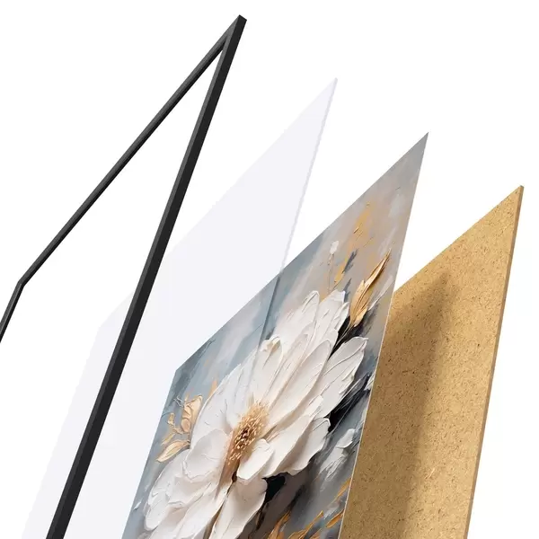 Plakatą sudaro rėmas, pleksiklas, atspausdintas vaizdas ir medžio drožlių plokštės pagrindas. Plakatą galima iš karto pakabinti ant sienos dėl kitoje pusėje esančių laikiklių.