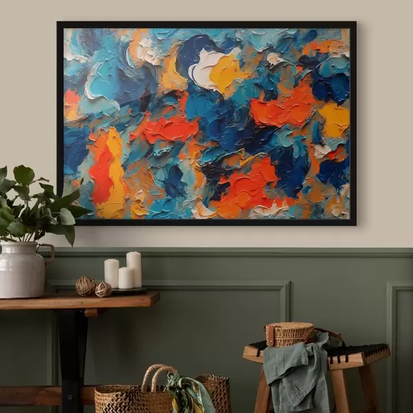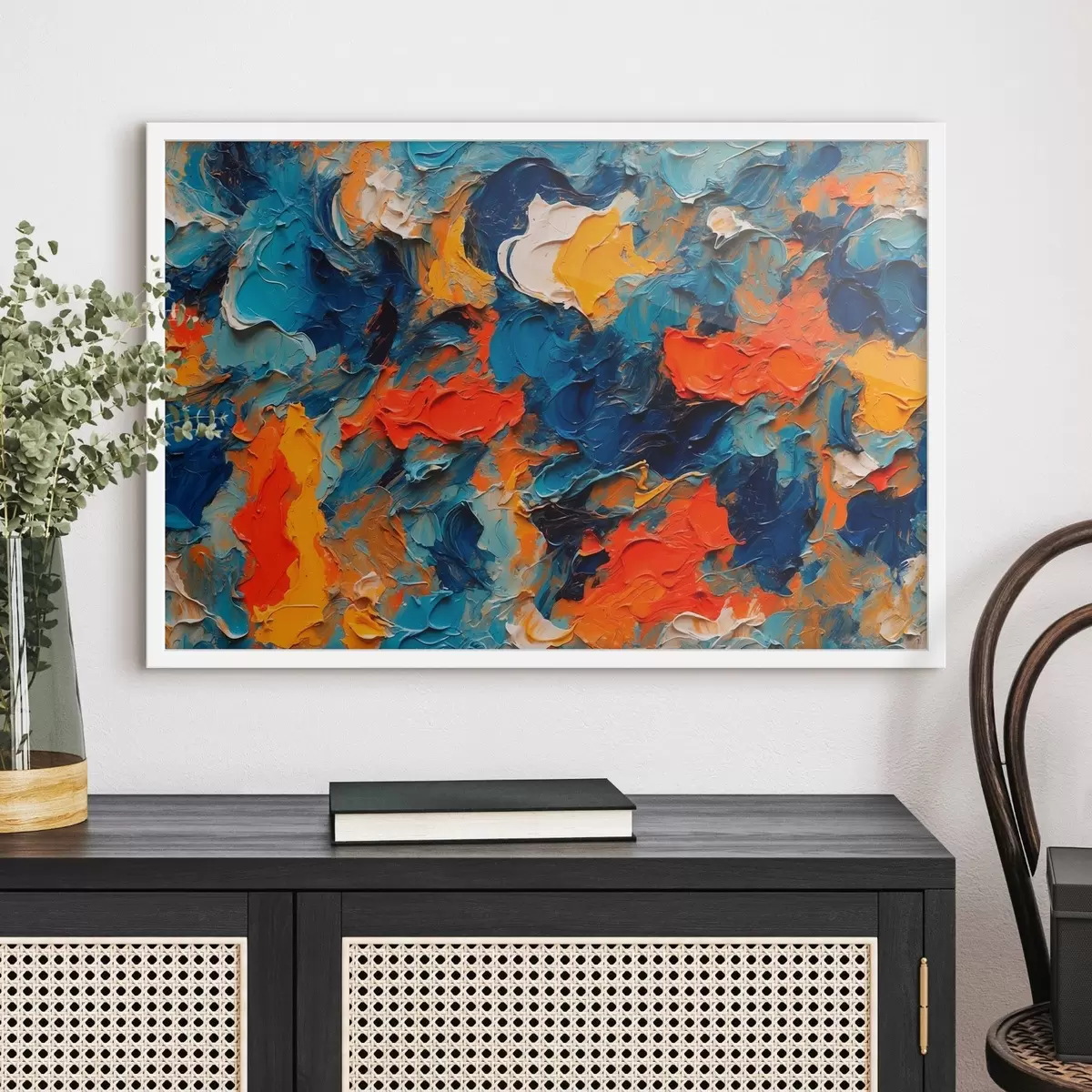 Plakatas Abstrakti tapyba aliejinės tapybos stiliumi su balta, mėlyna ir raudona spalvomis f43093
