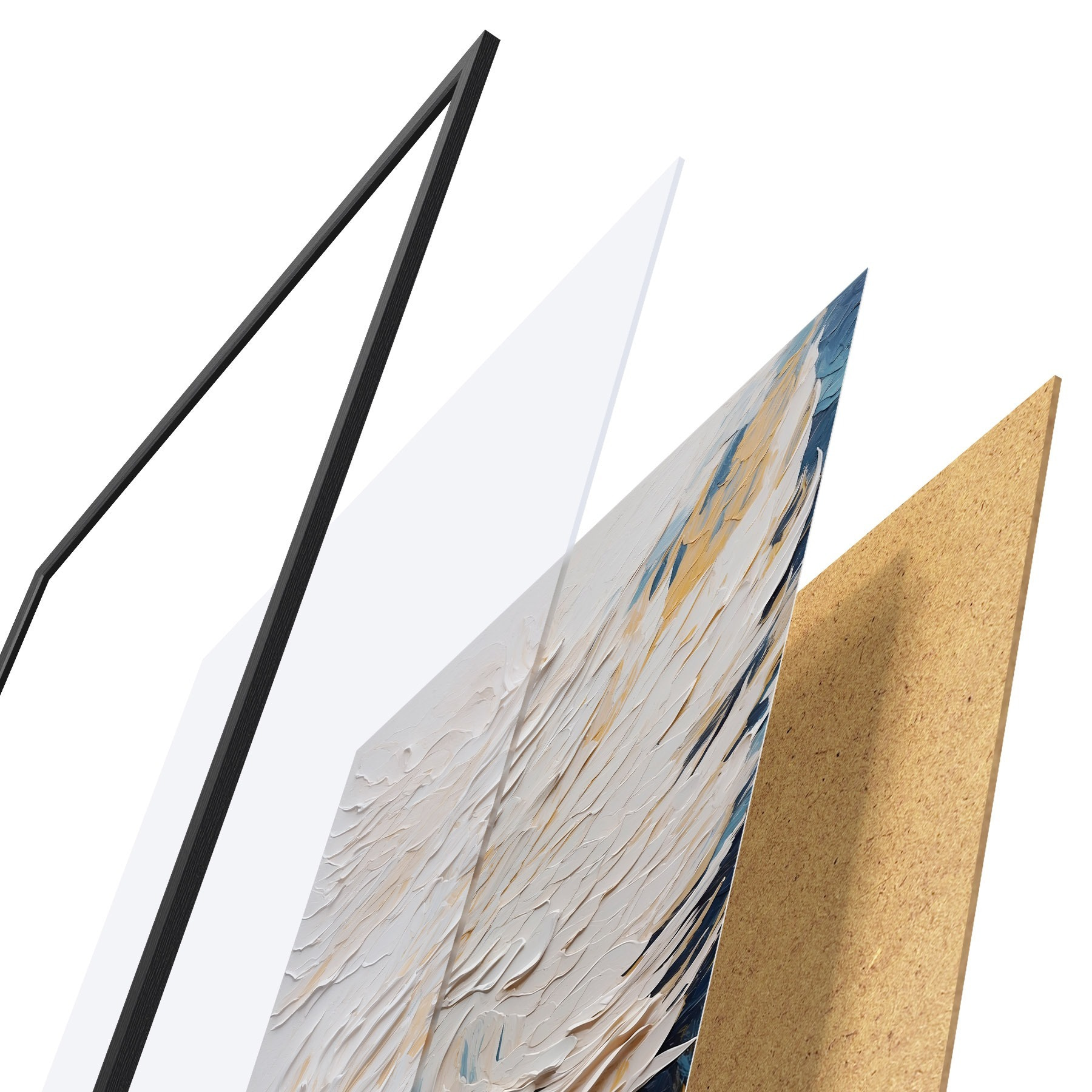 Plakatą sudaro rėmas, pleksiklas, atspausdintas vaizdas ir medžio drožlių plokštės pagrindas. Plakatą galima iš karto pakabinti ant sienos dėl kitoje pusėje esančių laikiklių.