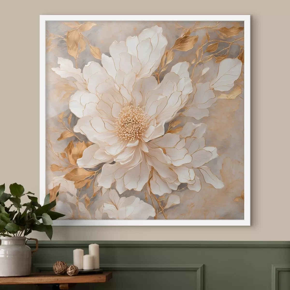 Plakatas Balta gėlė su lapais akrilo tapybos stiliumi f43115