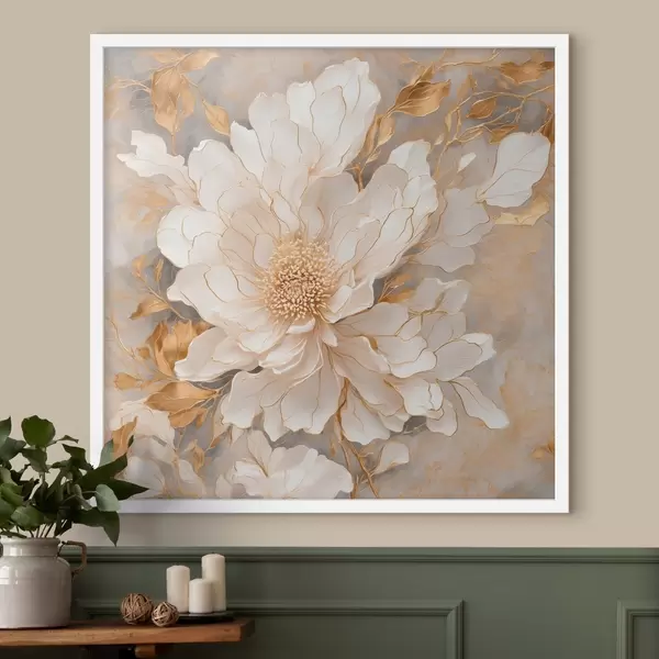 Plakatas Balta gėlė su lapais akrilo tapybos stiliumi Ne f43115