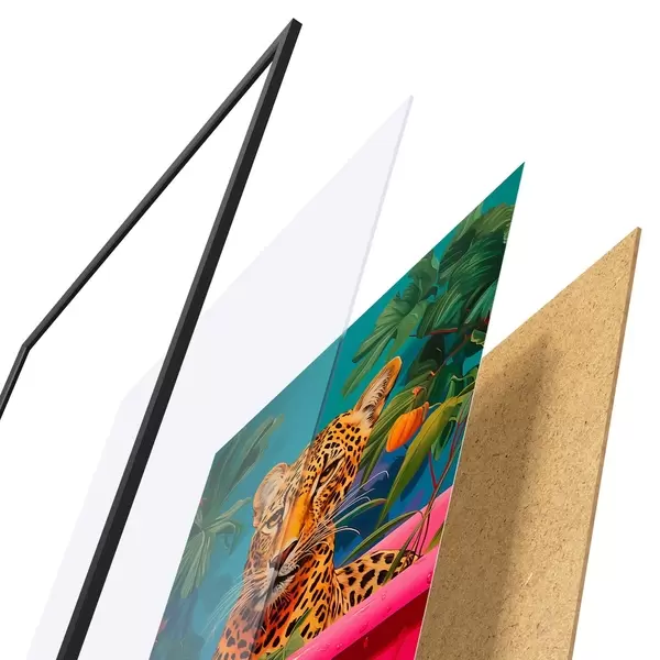 Plakatą sudaro rėmas, pleksiklas, atspausdintas vaizdas ir medžio drožlių plokštės pagrindas. Plakatą galima iš karto pakabinti ant sienos dėl kitoje pusėje esančių laikiklių.
