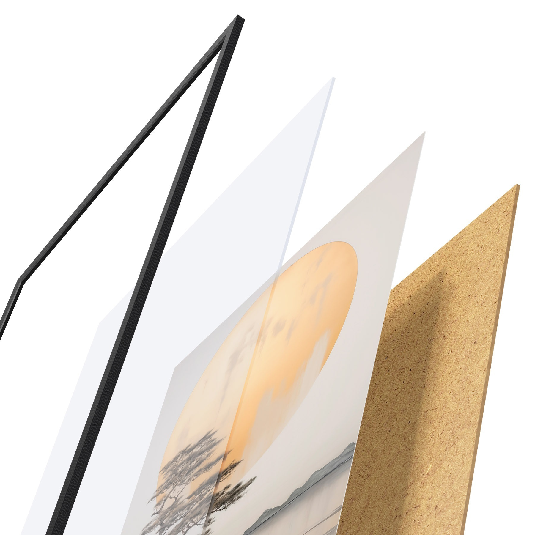 Plakatą sudaro rėmas, pleksiklas, atspausdintas vaizdas ir medžio drožlių plokštės pagrindas. Plakatą galima iš karto pakabinti ant sienos dėl kitoje pusėje esančių laikiklių.