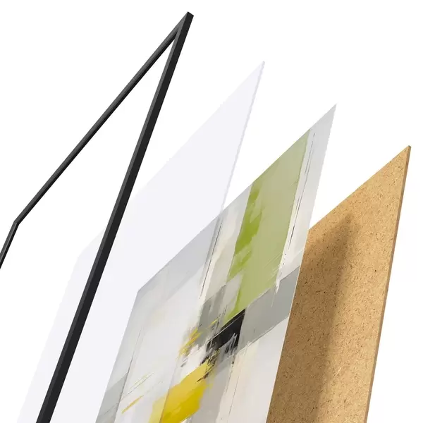 Plakatą sudaro rėmas, pleksiklas, atspausdintas vaizdas ir medžio drožlių plokštės pagrindas. Plakatą galima iš karto pakabinti ant sienos dėl kitoje pusėje esančių laikiklių.