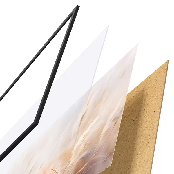 Plakatą sudaro rėmas, pleksiklas, atspausdintas vaizdas ir medžio drožlių plokštės pagrindas. Plakatą galima iš karto pakabinti ant sienos dėl kitoje pusėje esančių laikiklių.