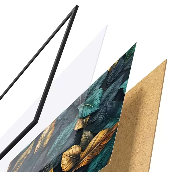 Plakatą sudaro rėmas, pleksiklas, atspausdintas vaizdas ir medžio drožlių plokštės pagrindas. Plakatą galima iš karto pakabinti ant sienos dėl kitoje pusėje esančių laikiklių.