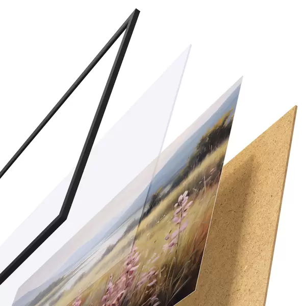 Plakatą sudaro rėmas, pleksiklas, atspausdintas vaizdas ir medžio drožlių plokštės pagrindas. Plakatą galima iš karto pakabinti ant sienos dėl kitoje pusėje esančių laikiklių.