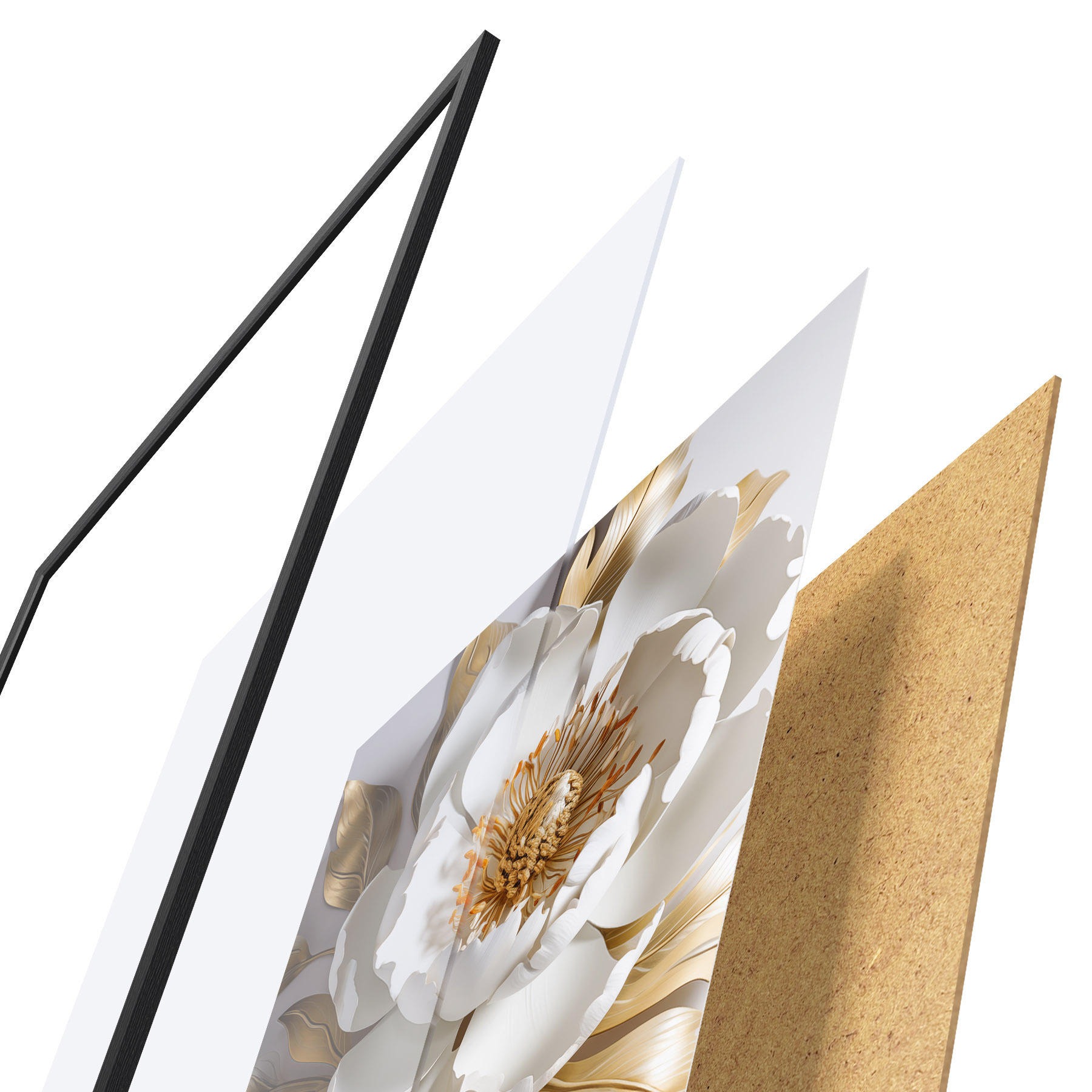 Plakatą sudaro rėmas, pleksiklas, atspausdintas vaizdas ir medžio drožlių plokštės pagrindas. Plakatą galima iš karto pakabinti ant sienos dėl kitoje pusėje esančių laikiklių.