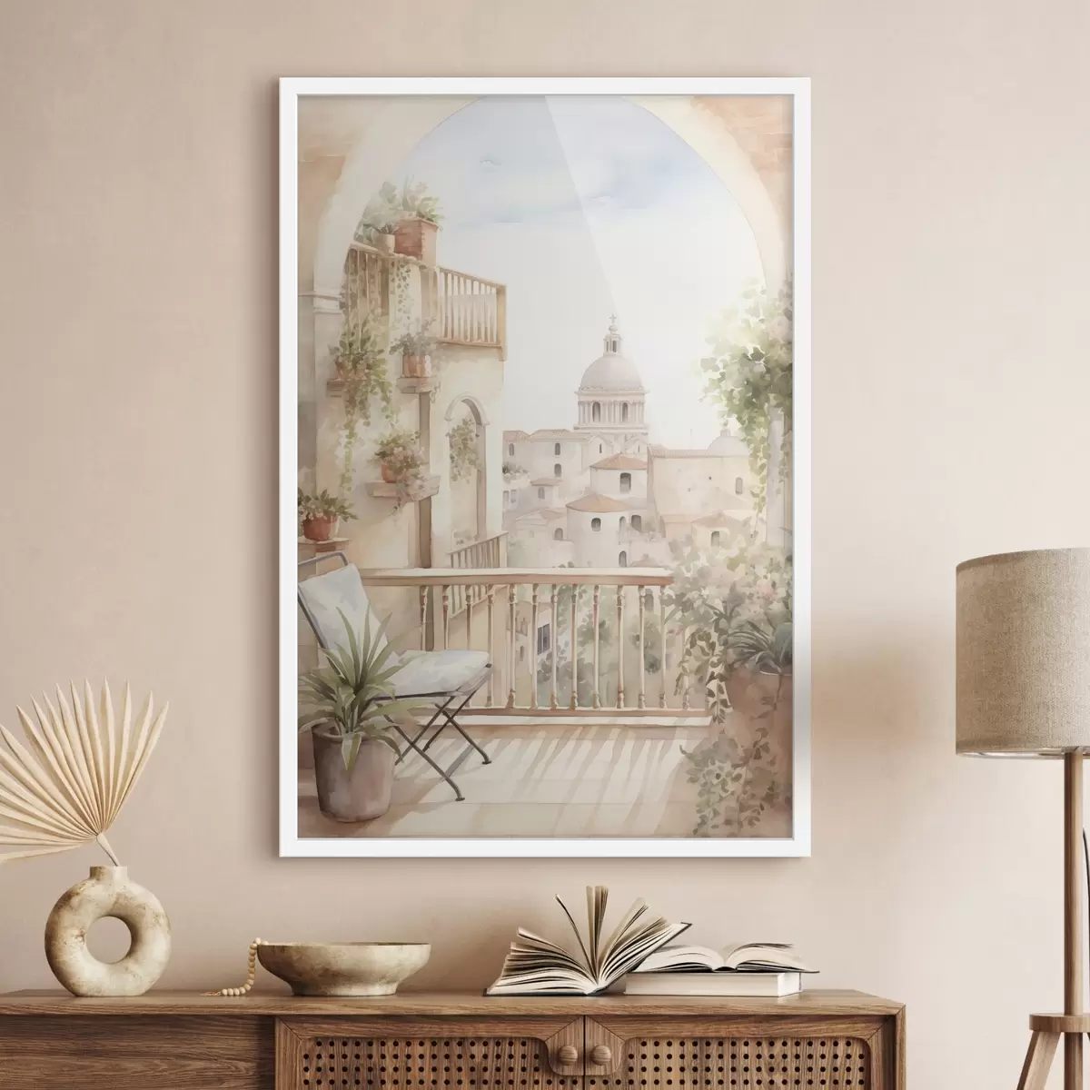 Plakatas Estetiškas vasaros balkonas, Ispanija, senoji architektūra, akvarelė, akvarelės stilius f43180