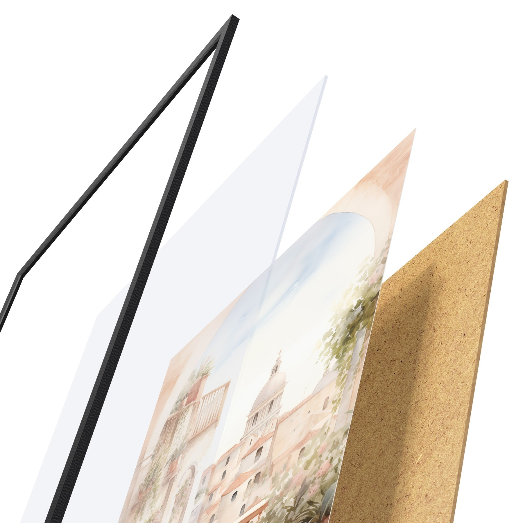 Plakatą sudaro rėmas, pleksiklas, atspausdintas vaizdas ir medžio drožlių plokštės pagrindas. Plakatą galima iš karto pakabinti ant sienos dėl kitoje pusėje esančių laikiklių.