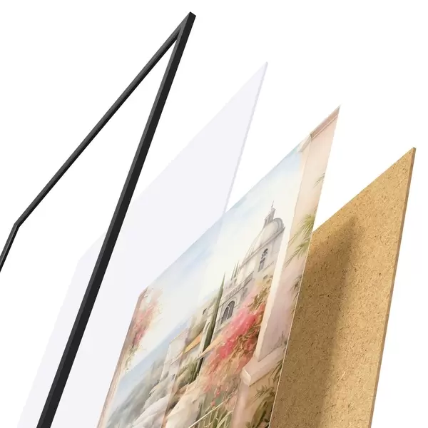 Plakatą sudaro rėmas, pleksiklas, atspausdintas vaizdas ir medžio drožlių plokštės pagrindas. Plakatą galima iš karto pakabinti ant sienos dėl kitoje pusėje esančių laikiklių.