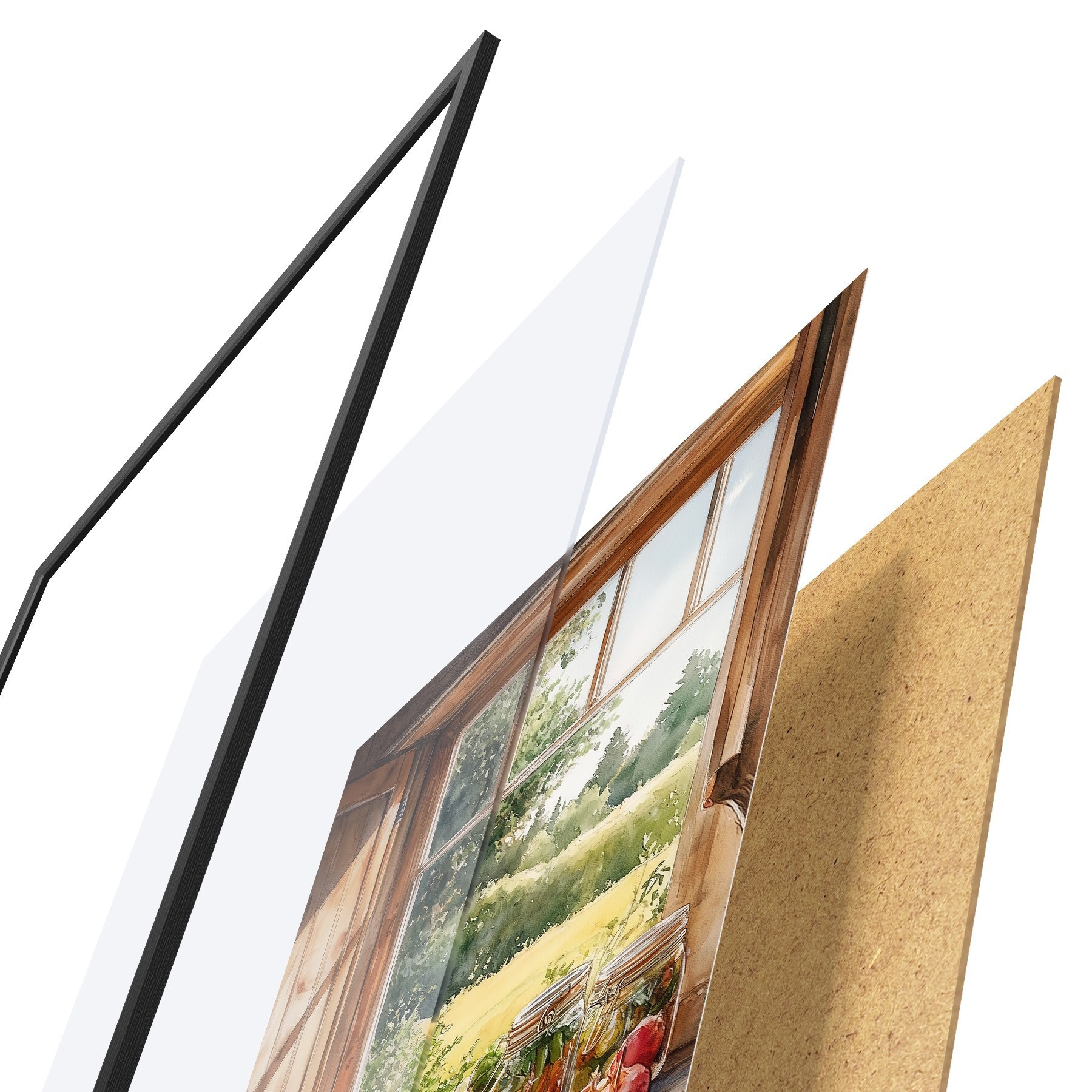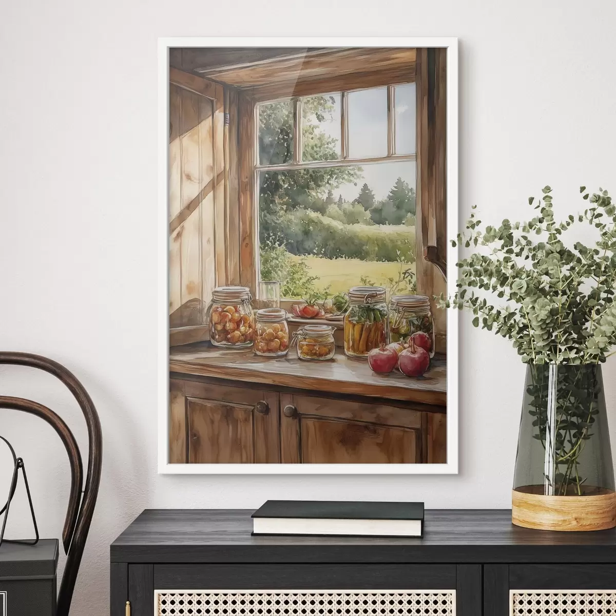 Plakatas Kaimo estetika, medinis namas, vasaros gamta, daržovės, akvarelės stilius f43185