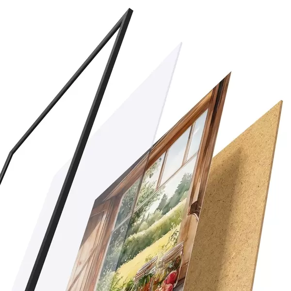 Plakatą sudaro rėmas, pleksiklas, atspausdintas vaizdas ir medžio drožlių plokštės pagrindas. Plakatą galima iš karto pakabinti ant sienos dėl kitoje pusėje esančių laikiklių.