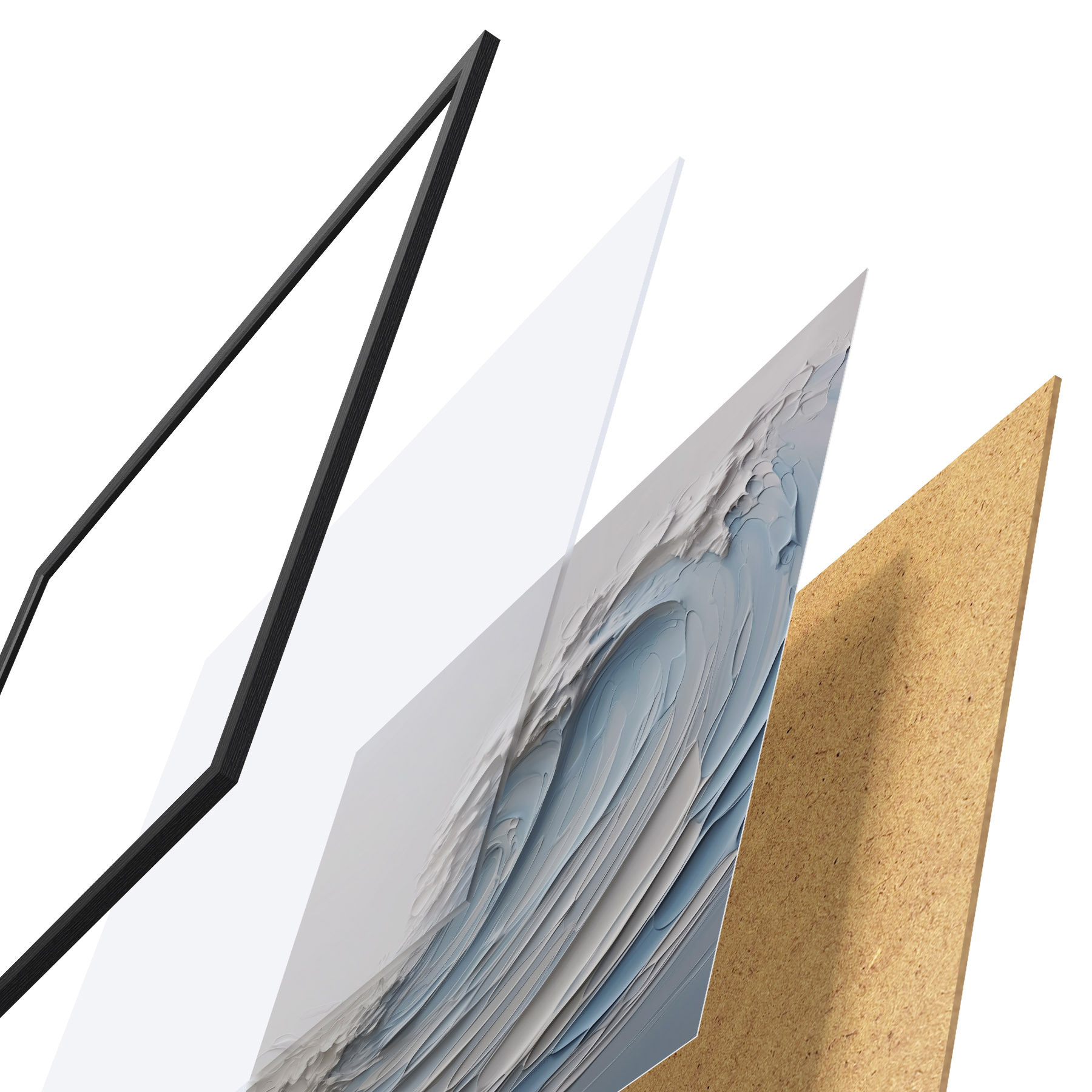 Plakatą sudaro rėmas, pleksiklas, atspausdintas vaizdas ir medžio drožlių plokštės pagrindas. Plakatą galima iš karto pakabinti ant sienos dėl kitoje pusėje esančių laikiklių.
